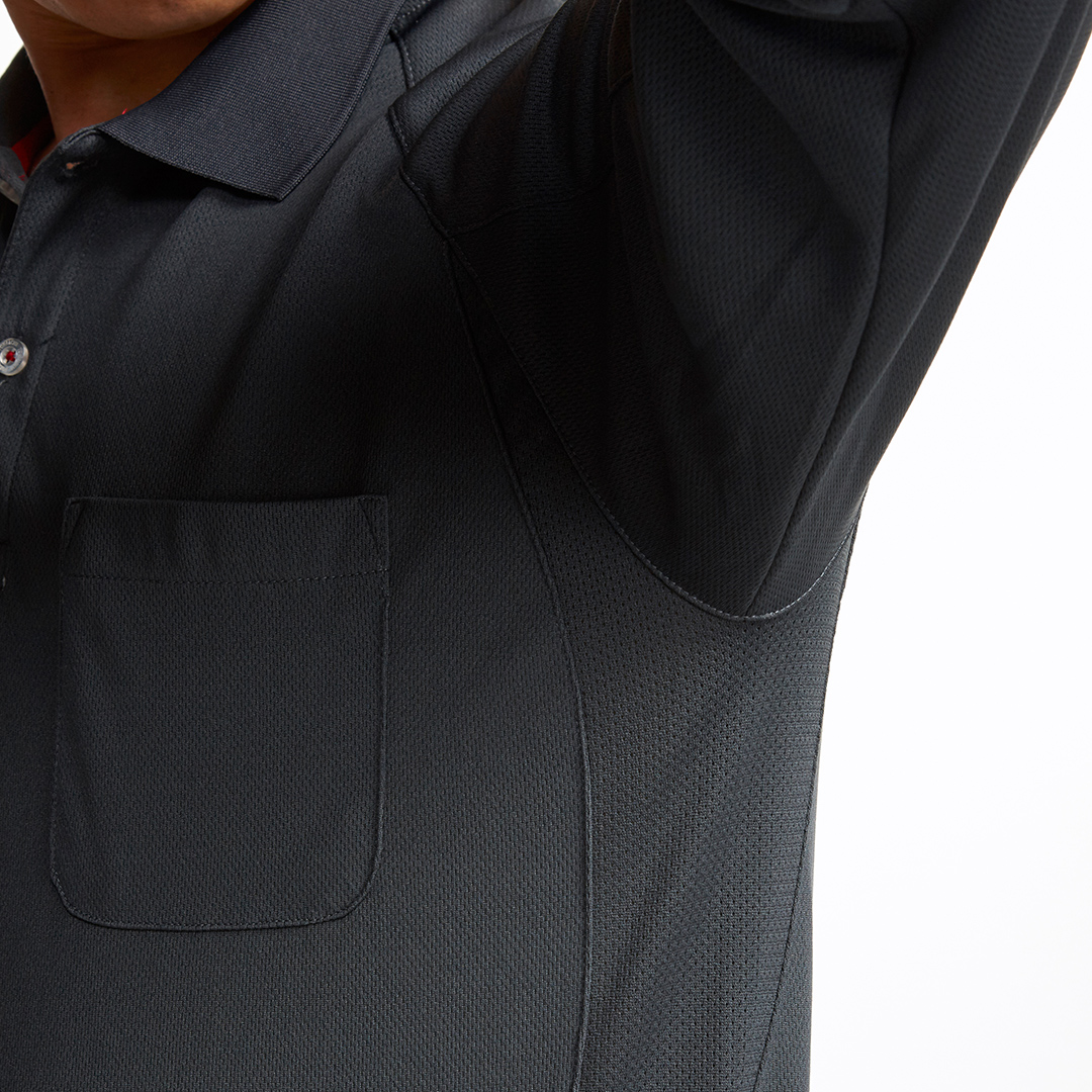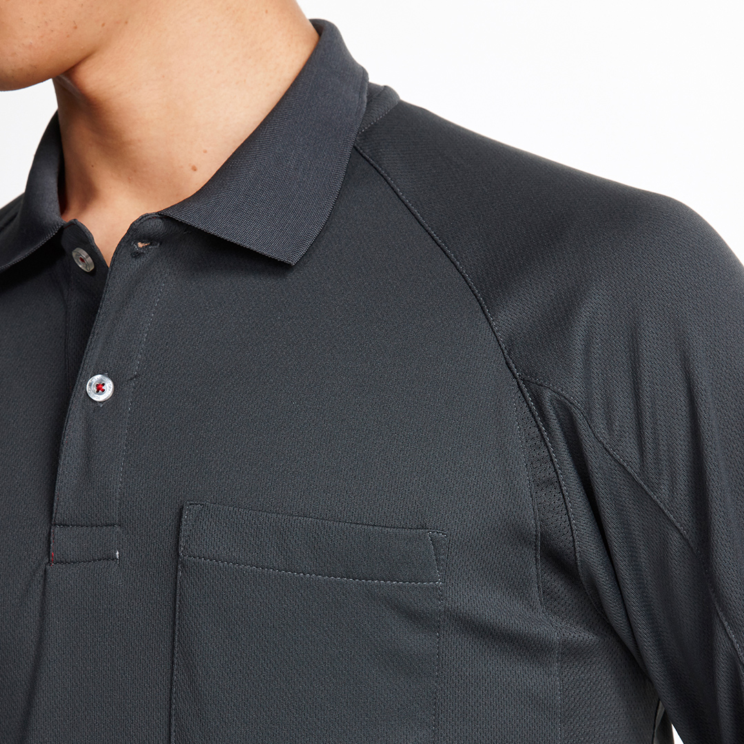 正装感の高い長袖ポロ。カジュアルで若々しさをアピールするなら、この一着。