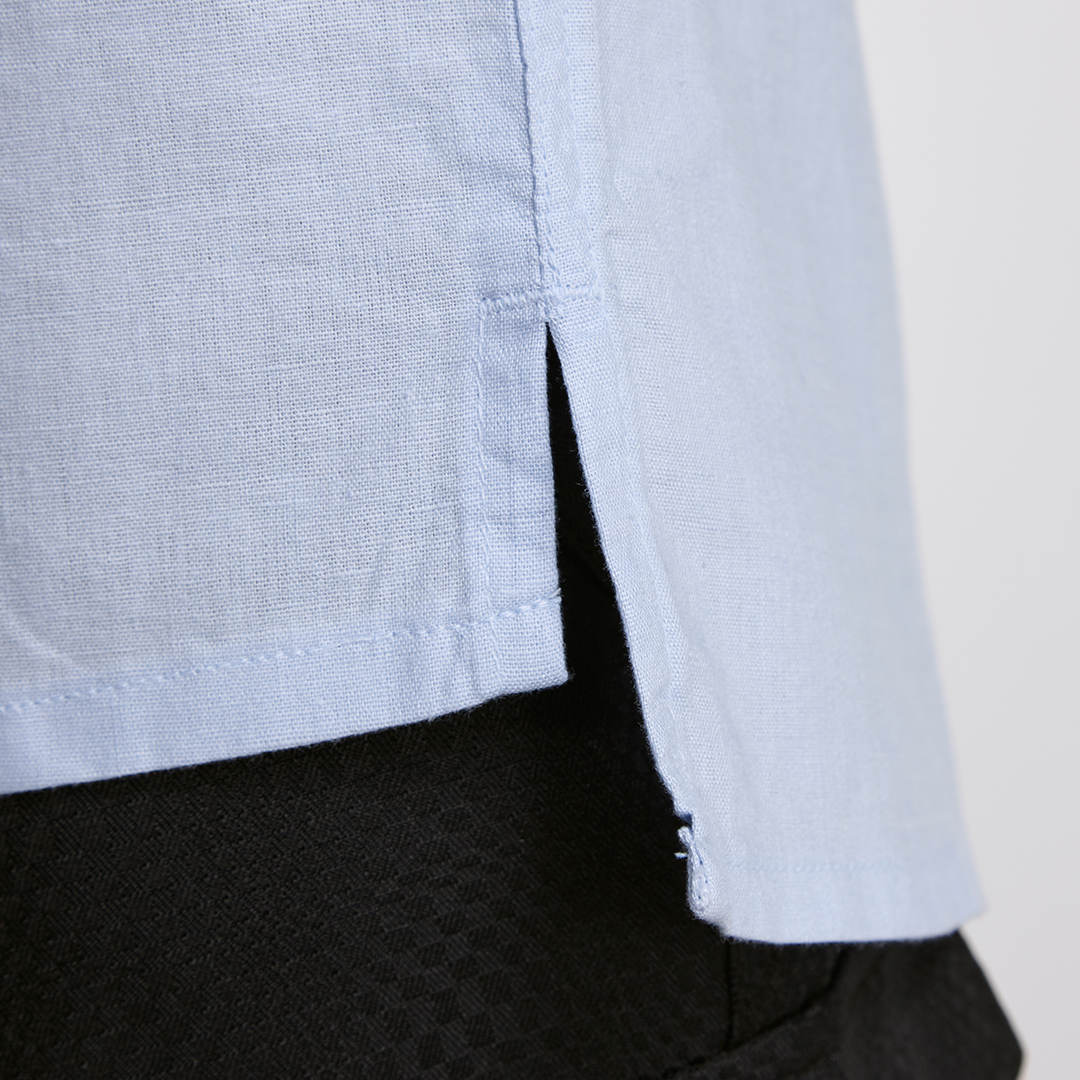 麻混紡のさらりとした肌ざわり。通気性も良いので汗ばむ季節にぴったりの麻混シャツ。