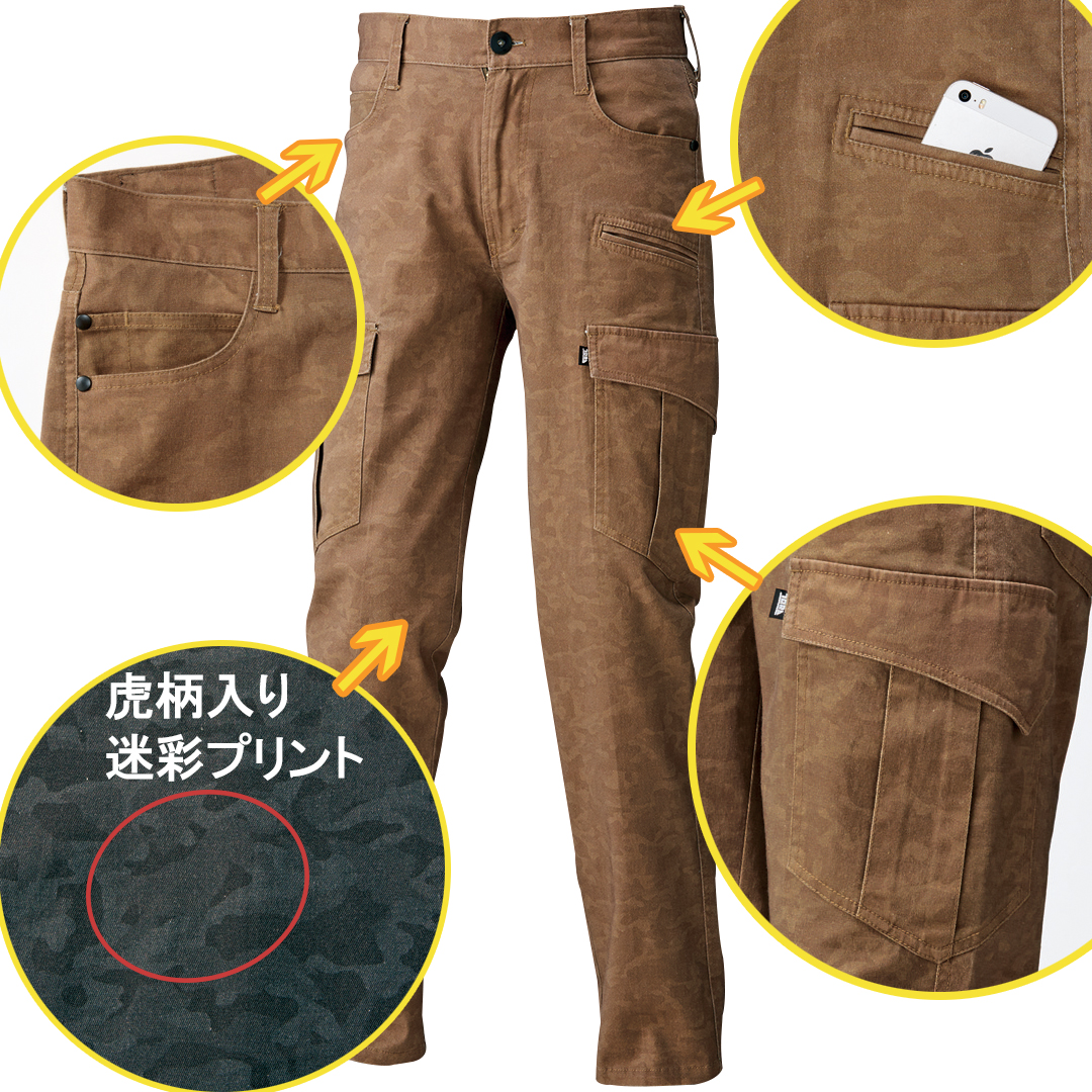 オリジナルの虎柄入り迷彩プリントが粋なカーゴパンツ