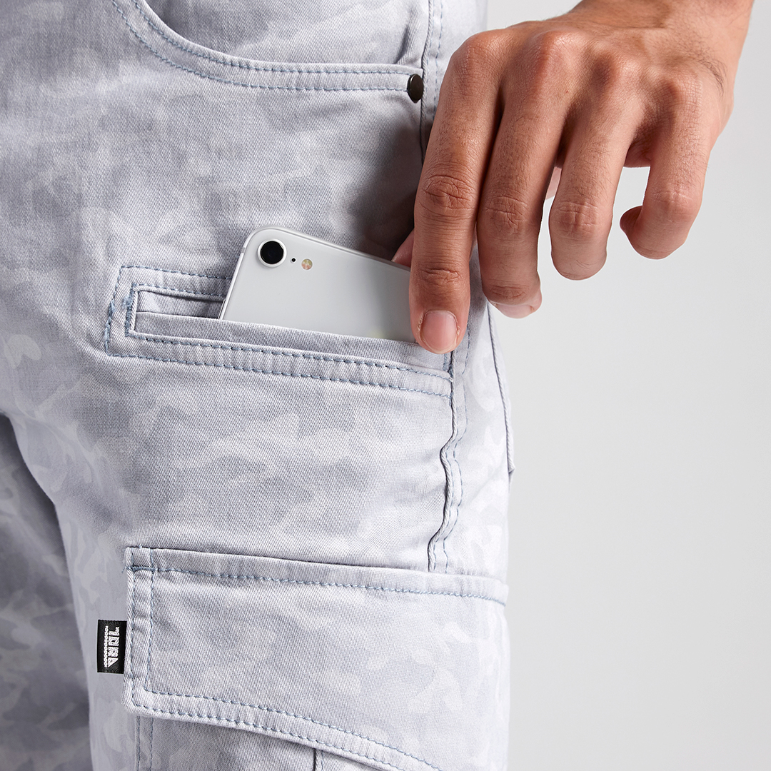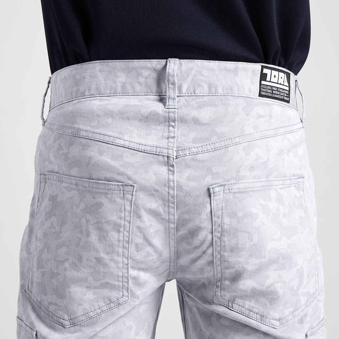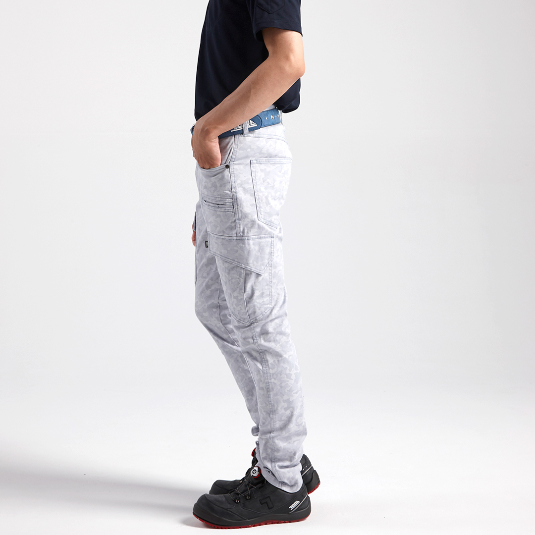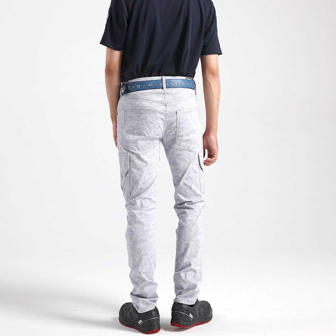 伝統的な雰囲気ながら、カジュアルなテイストもミックスしたカーゴパンツ。ストレッチ性があり、細身でも動きやすい設計です。一見普通の迷彩柄に見えますが、虎が浮かび上がる迷彩プリント生地を使用した遊び心のある一着となっています。スマートフォン対応ポケットや左右の大きなポケット等のディテールにも注目です。