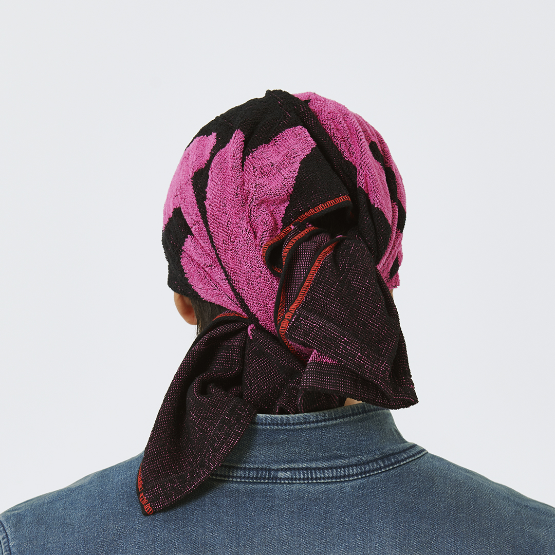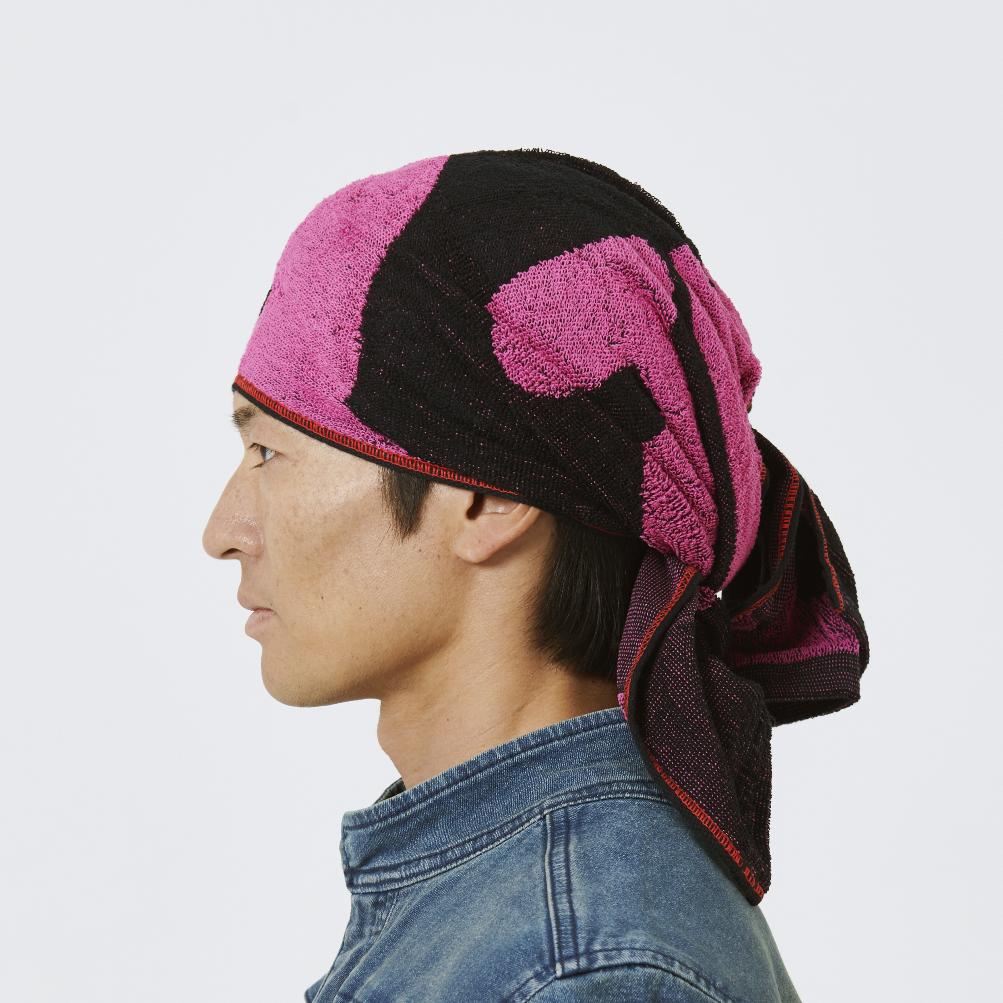 赤耳タオルシリーズの機能性を継承し、デザイン性・実用性にすぐれたスーパービッグロゴタオルです。頭をすっぽりと覆うことができ、しかも簡単にしばることが可能。