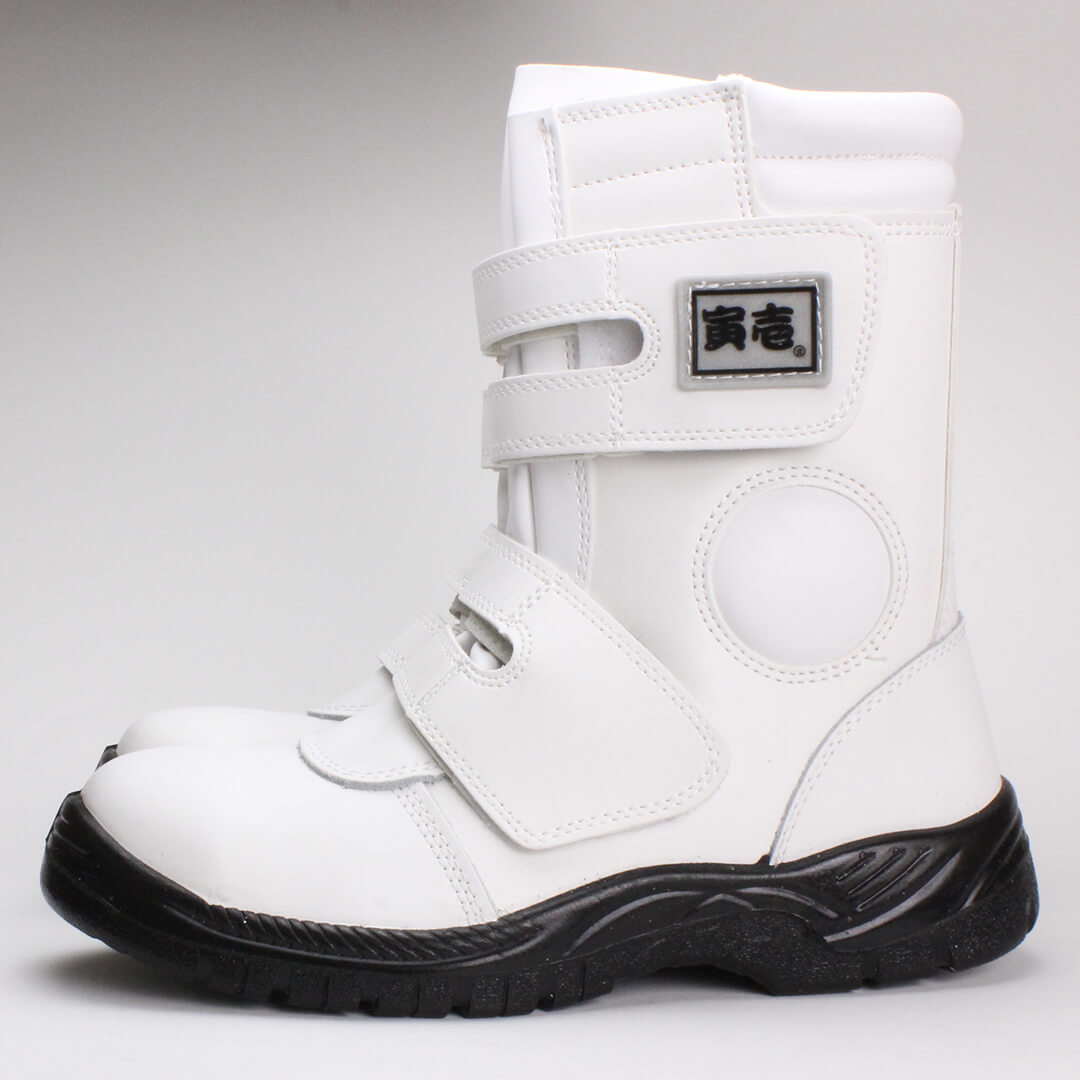 つま先とかかと部は本革仕様。足元をしっかり固めるロングタイプの安全長マジックです。