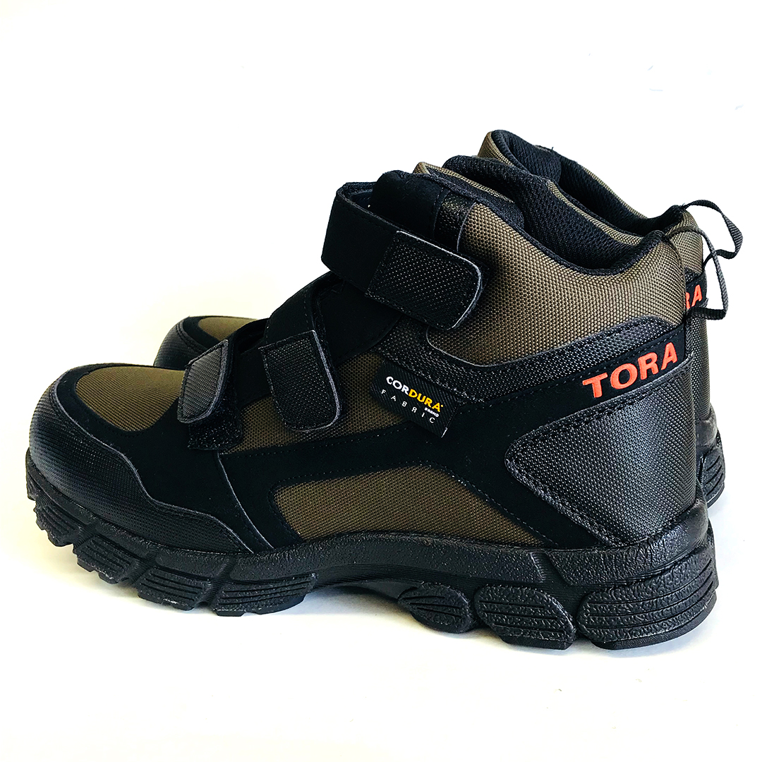 基布に耐久性に優れたコーデュラ素材を使用。見た目とは裏腹に片足約350g(26.0cm片足重量)と丈夫でありながら軽量な一足です。着脱が簡単なマジック式を採用。ソールは耐摩耗性に優れたゴム底仕様。かかと部分は特に厚みを持たせた設計になっています。オレンジのブランドロゴがアクセント。カジュアルな装いにも合うシンプルなデザインです。