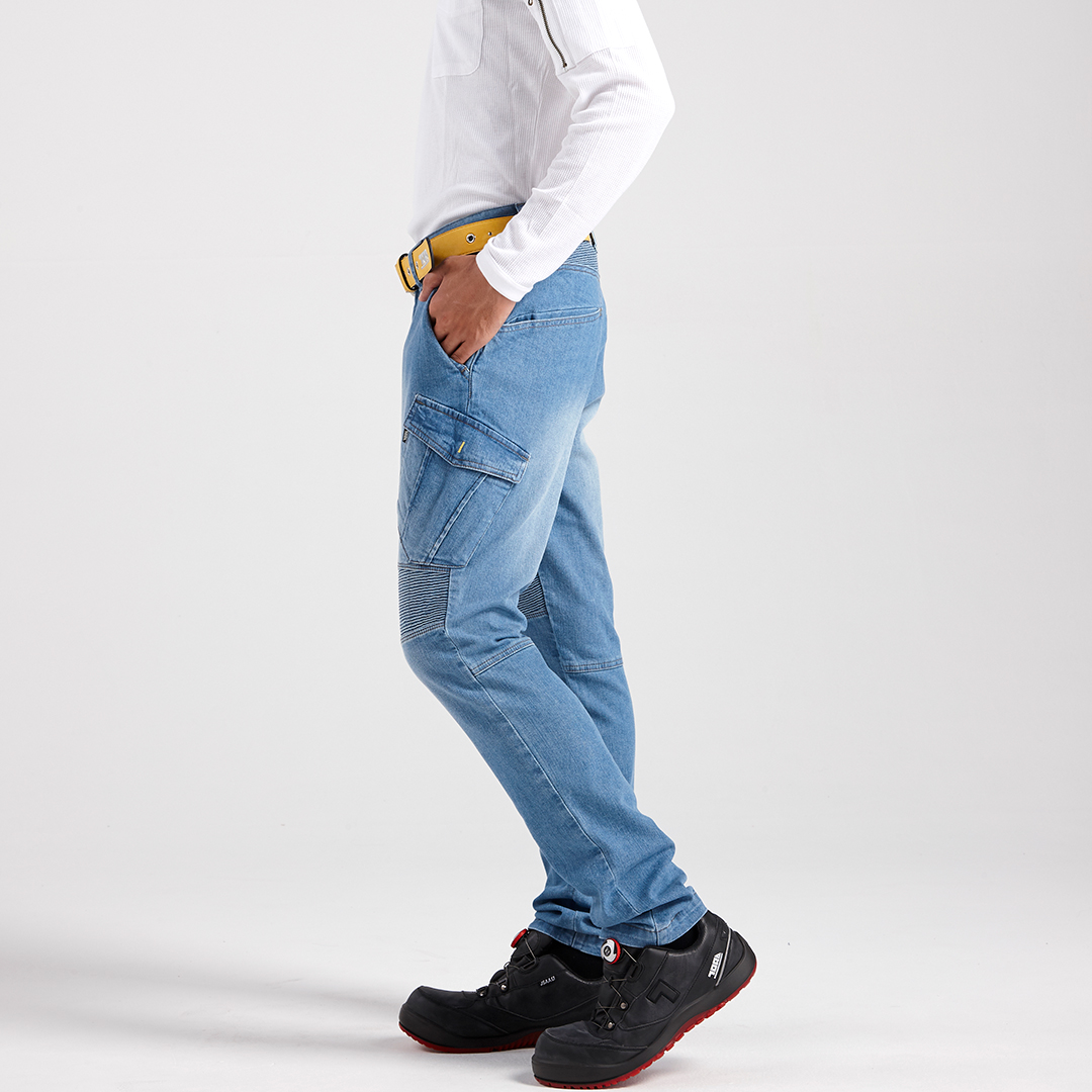 好評の8930シリーズのデニム蛇腹カーゴパンツから加工やデザインを一新。生地が8.5ozと薄くなり、夏でも快適。生地が薄くなっても強度は変わらず、蛇腹プリーツの伸縮性が向上。さらに動きやすくなり、表面の凹凸もはっきりと出て迫力もアップしています。左後身頃のスラッシュポケットは、工具などが出し入れしやすい大きめのサイズ。シンプルなデザインでお仕事着以外でもなじみやすいアイテムです。