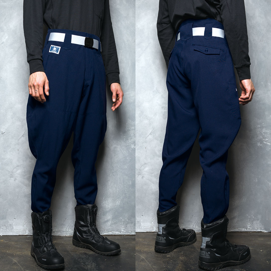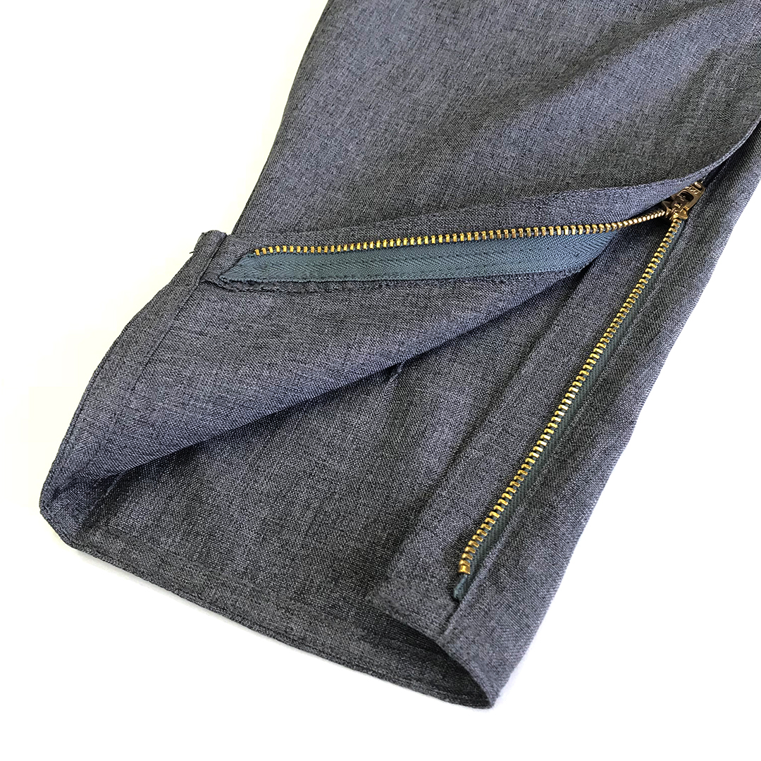 トロピカル素材といわれる夏専用のマテリアルを使用し、強度とともに通気性をプラス。ゆったりした腿部分とキュッと絞ったふくらはぎ部分の絶妙なバランスが他の商品には無い独特の軽快感を醸し出します。