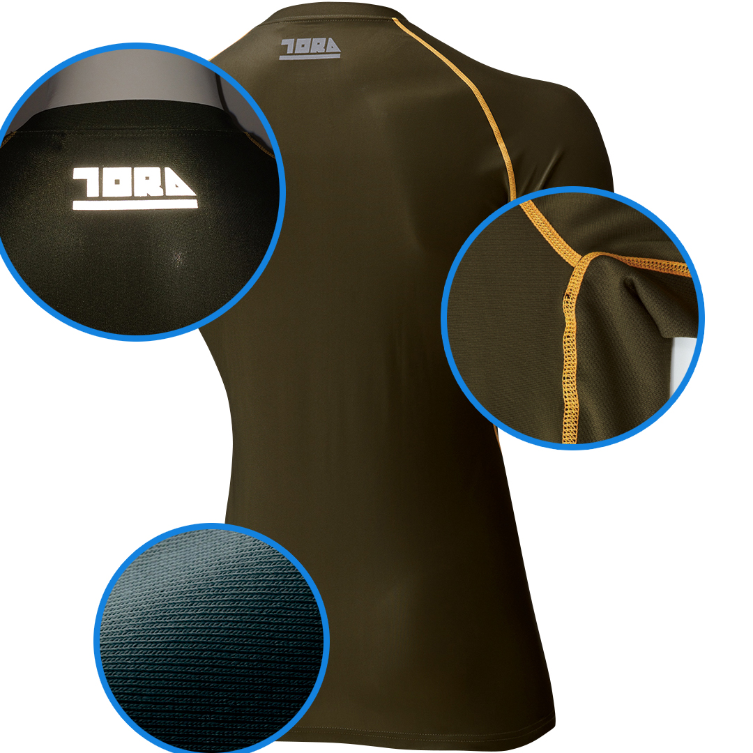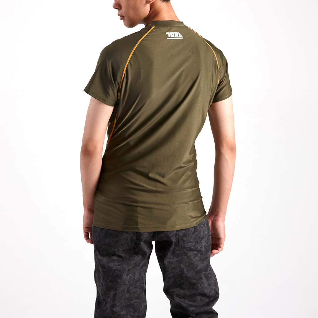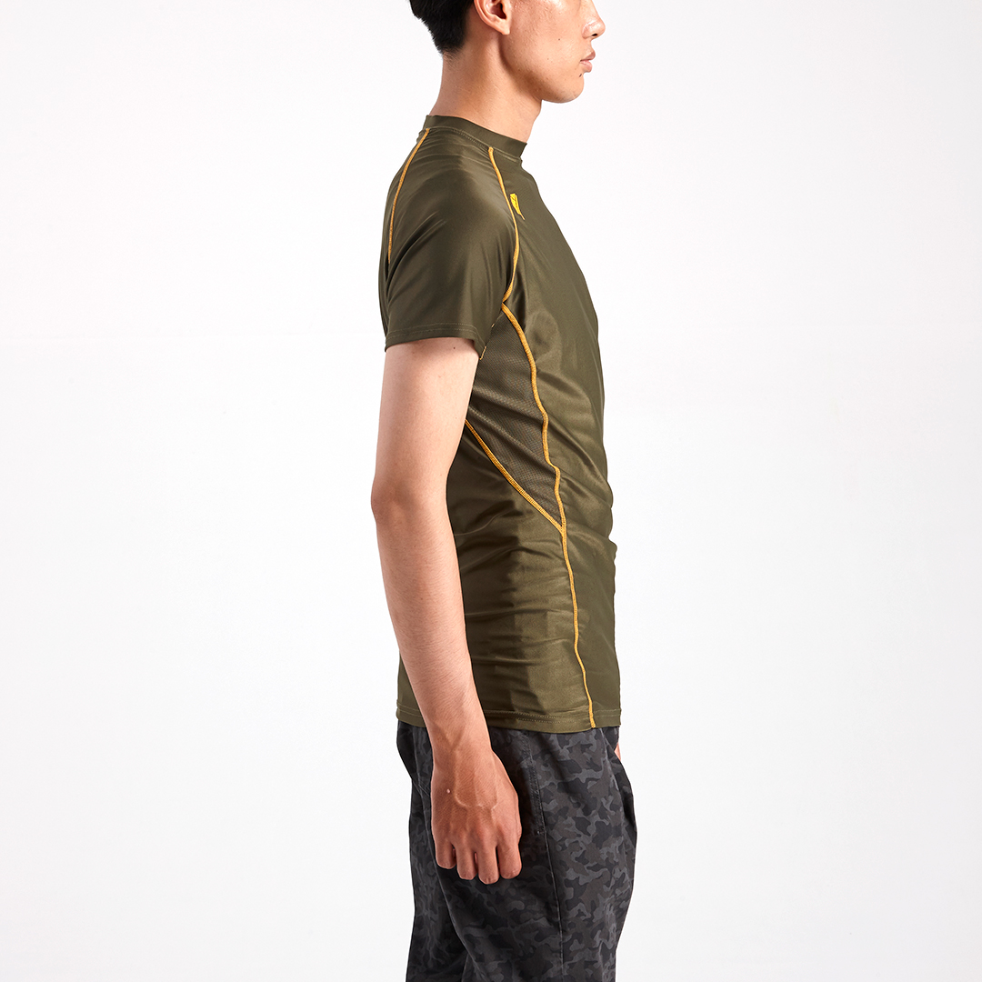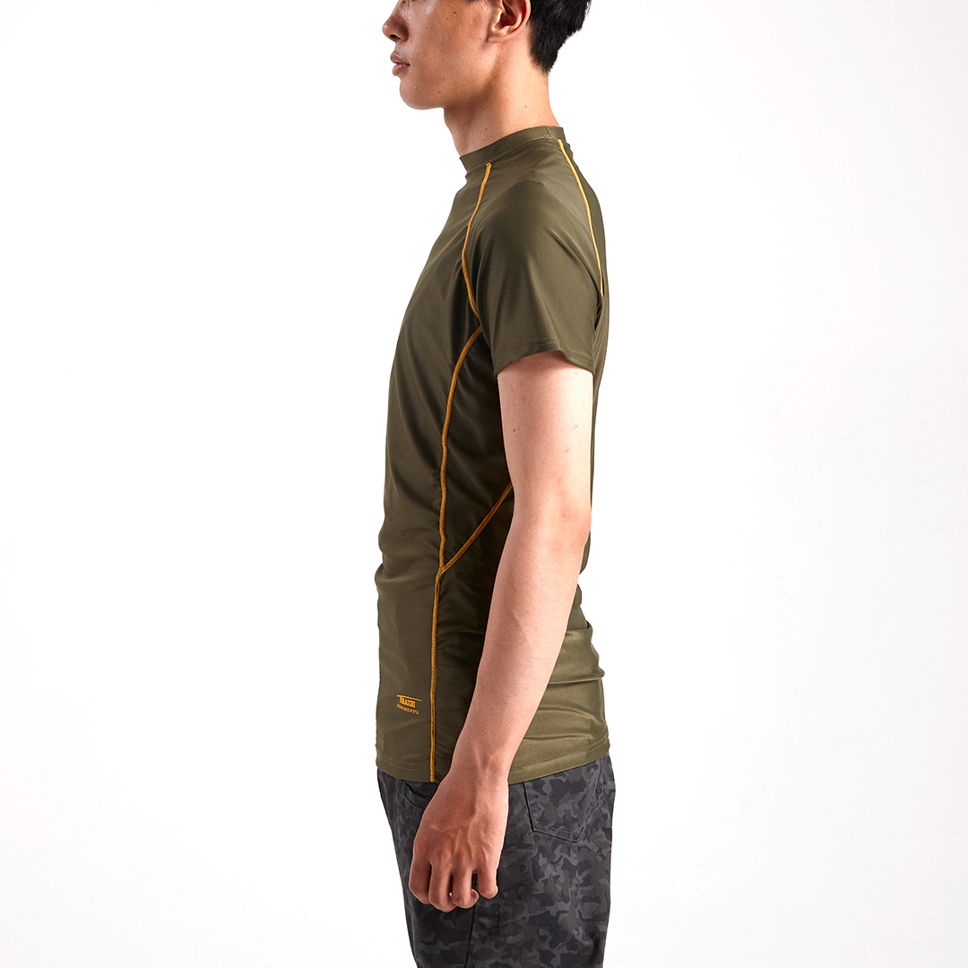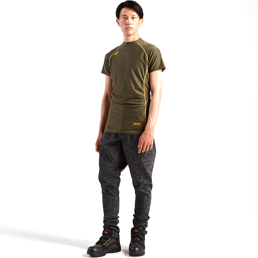 定番商品の5978シリーズに半袖シャツが登場。素材にはストレッチ性の高いトリコットを採用。衿背後の反射プリント・脇消臭テープ等の実用性とフラットシームラインのデザイン性も兼備。最大のパフォーマンスを引き出すフィット感の半袖クルーネックTシャツです。