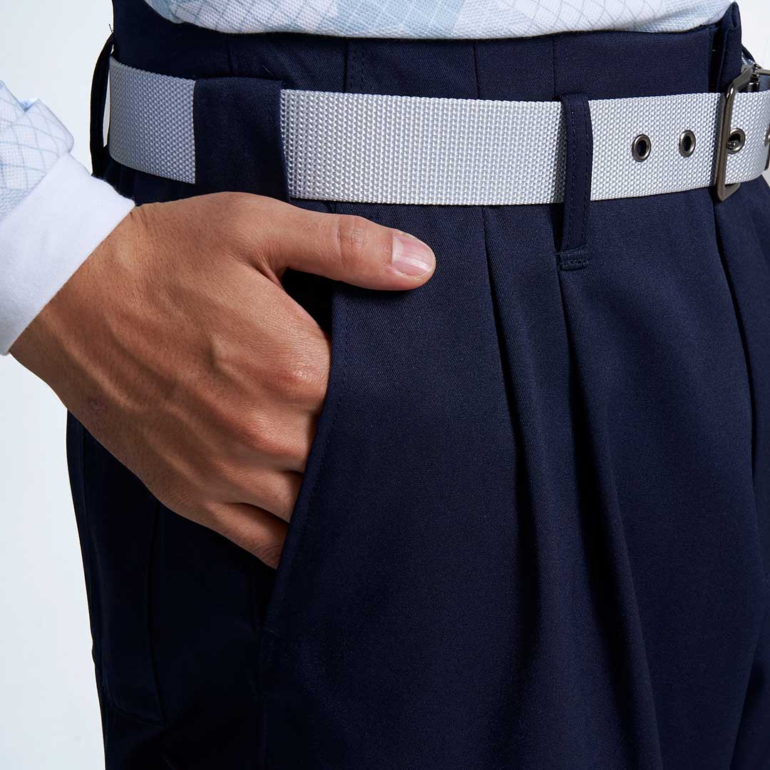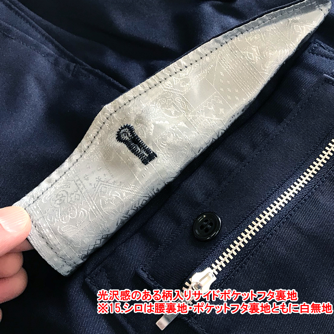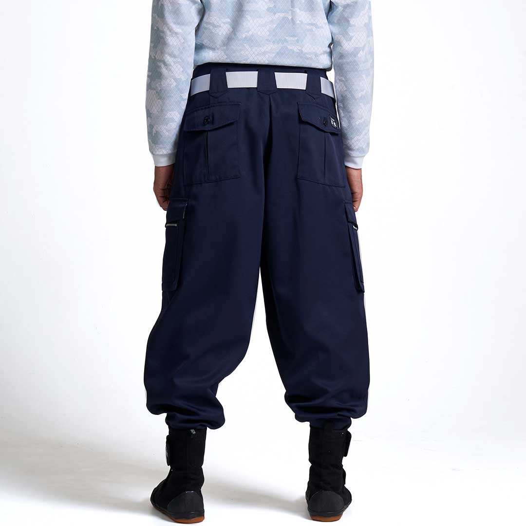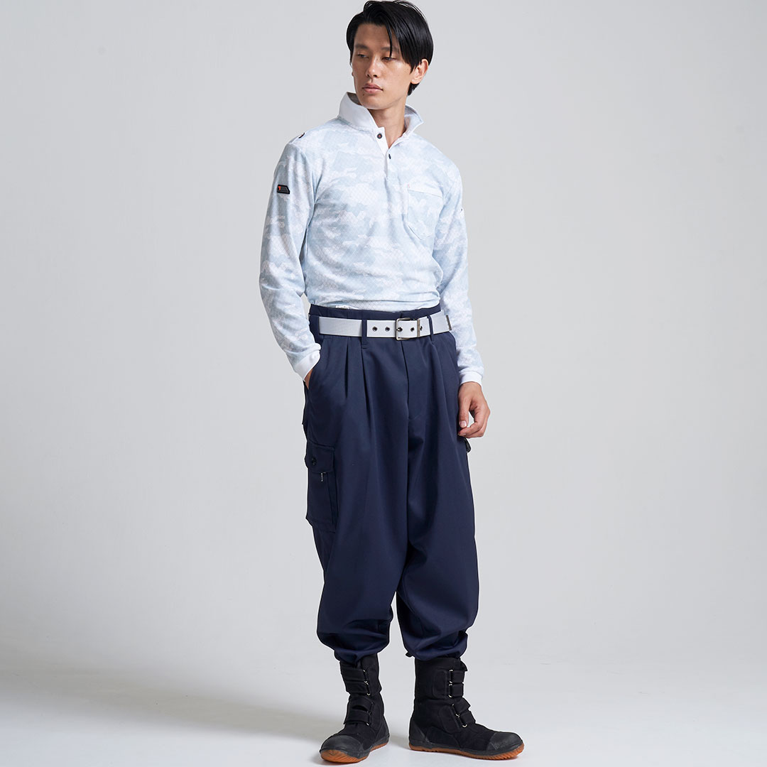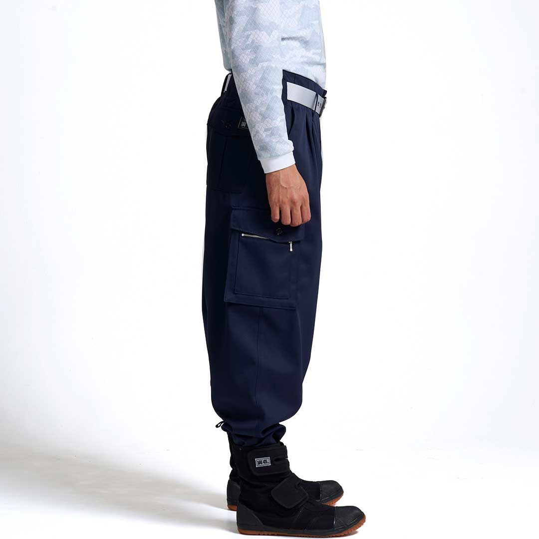 高所でも安心のフォルム。ゆとりのあるワタリ幅と絞った足首という特徴のあるシルエット。作業性最優先のスタイルが支持されるポイントです。