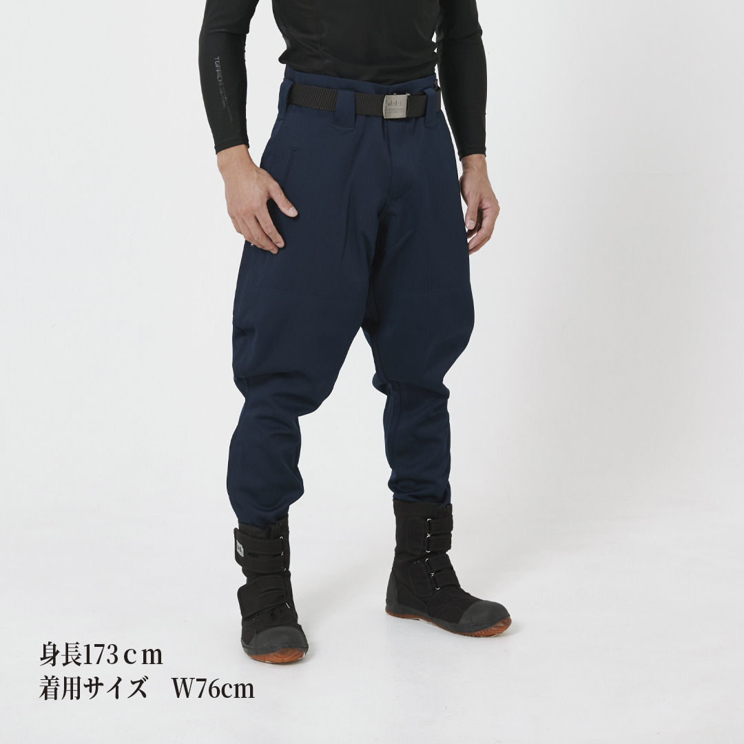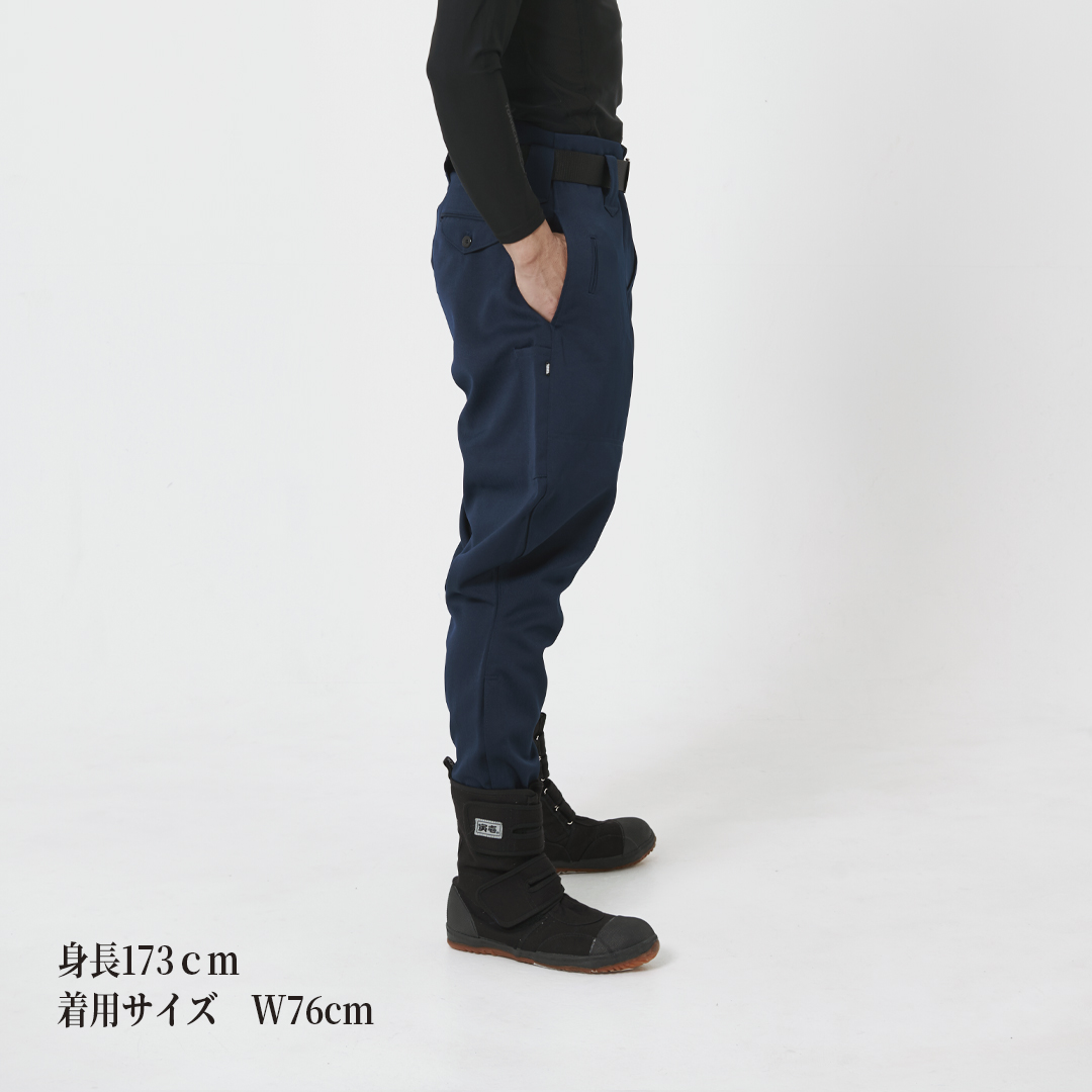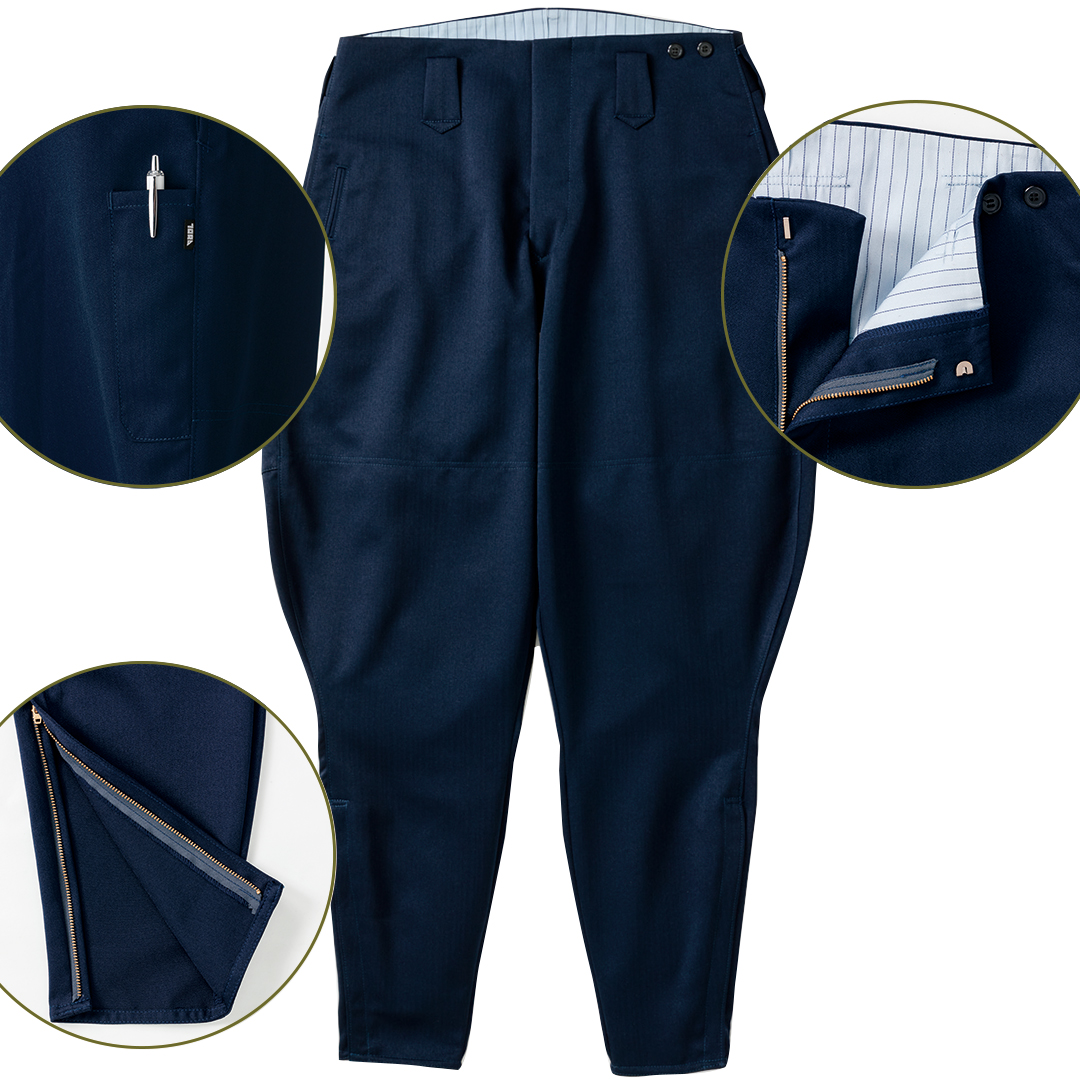 「ブルーラベル寅壱」に乗馬ズボンが仲間入り。裾をぎゅっと絞った活動性重視のアイテム。さりげないミニヘリンボーン柄がほどよいお洒落感を演出。