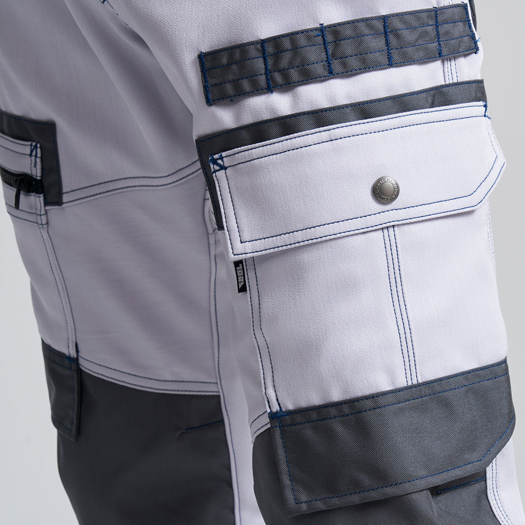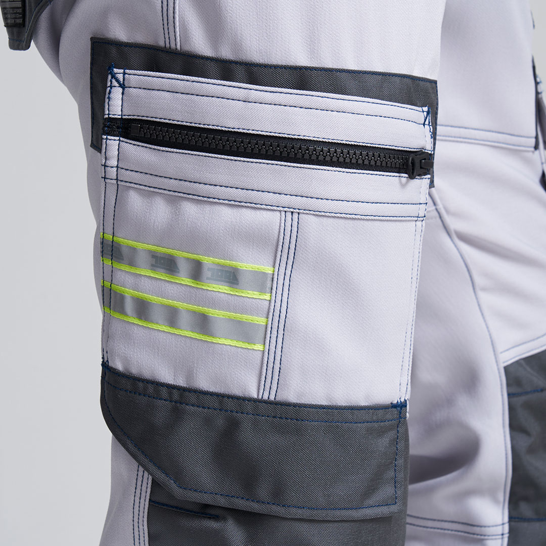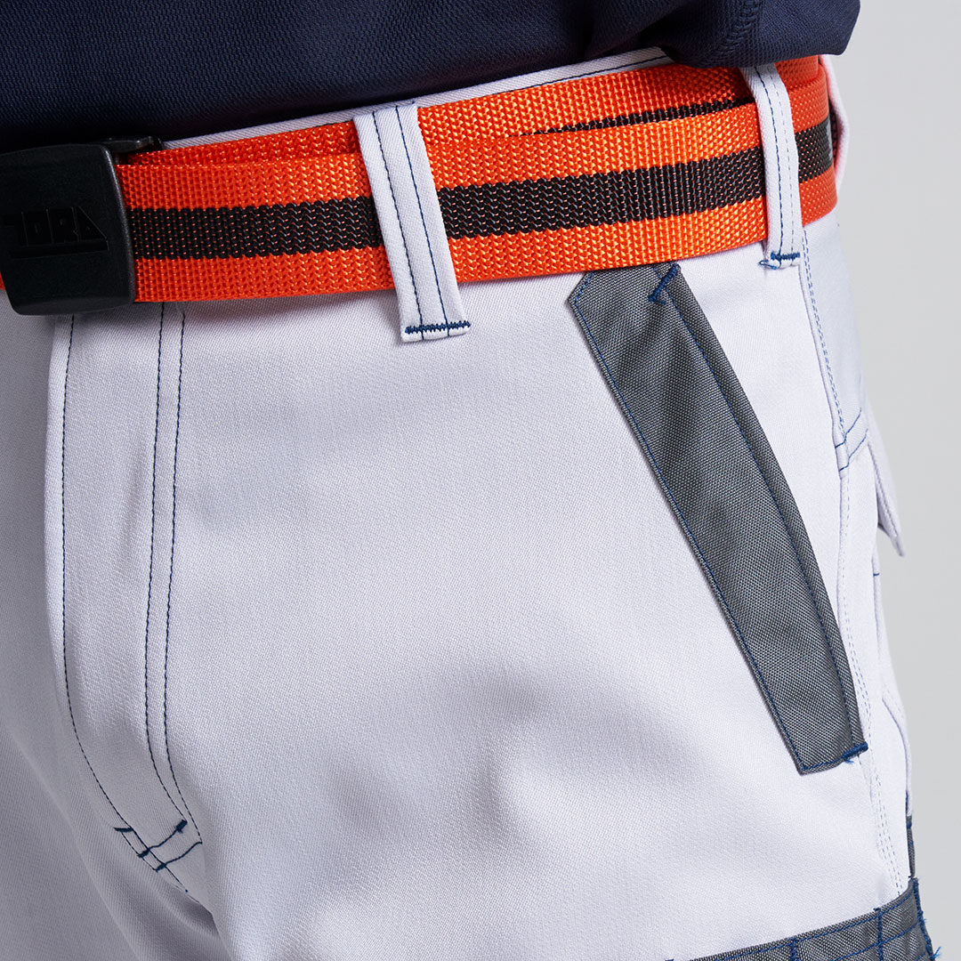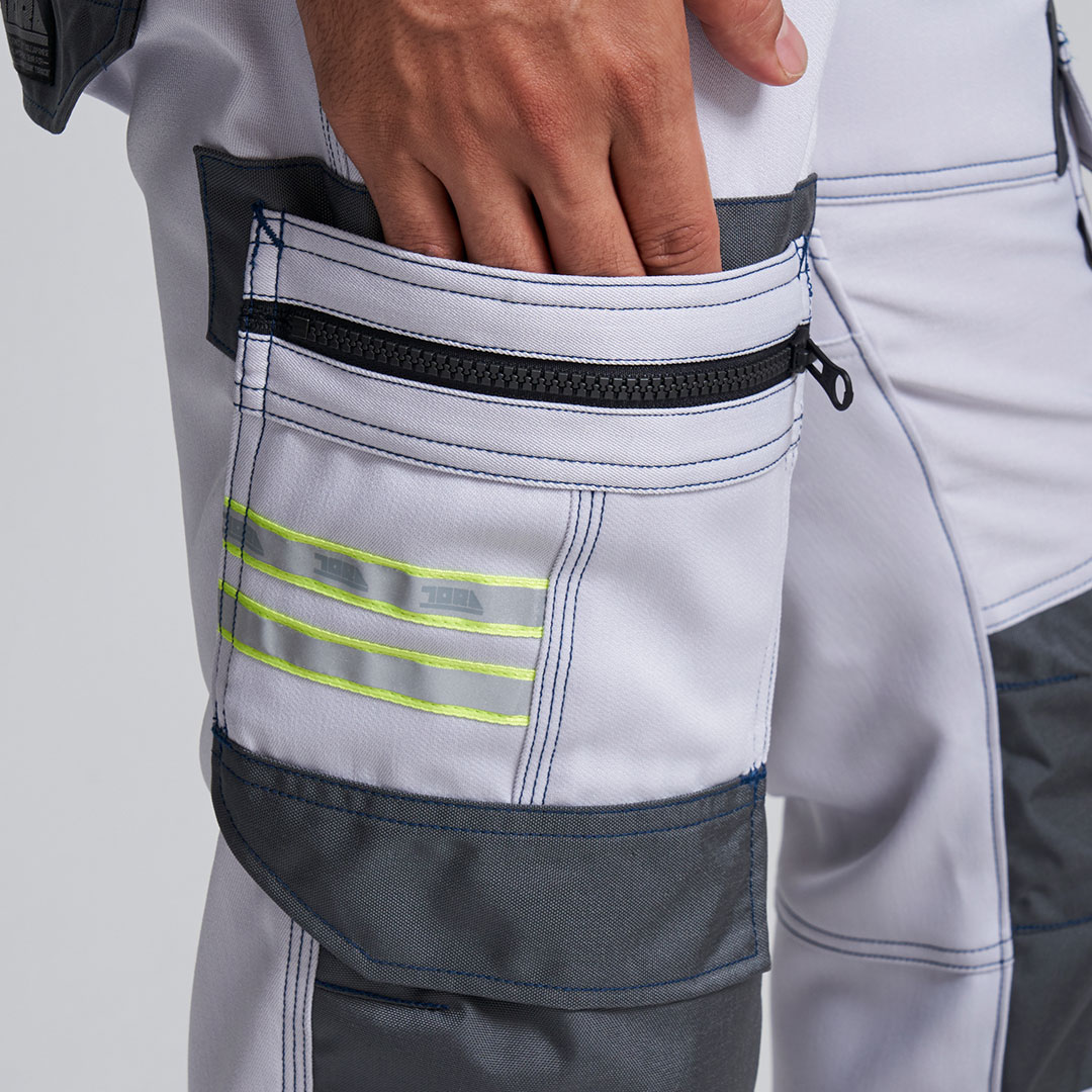 軽量、しなやかな素材と高耐久素材のコラボ。2つの素材のコラボレーションによって、吸汗速乾とともに帯電防止や高耐久性を実現。しかも随所に施された反射テープによって高い安全性に配慮した高機能カーゴパンツ。