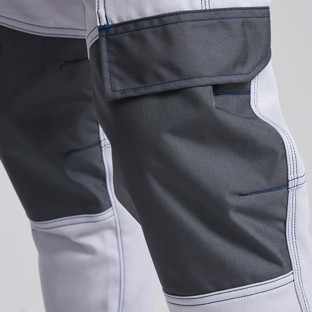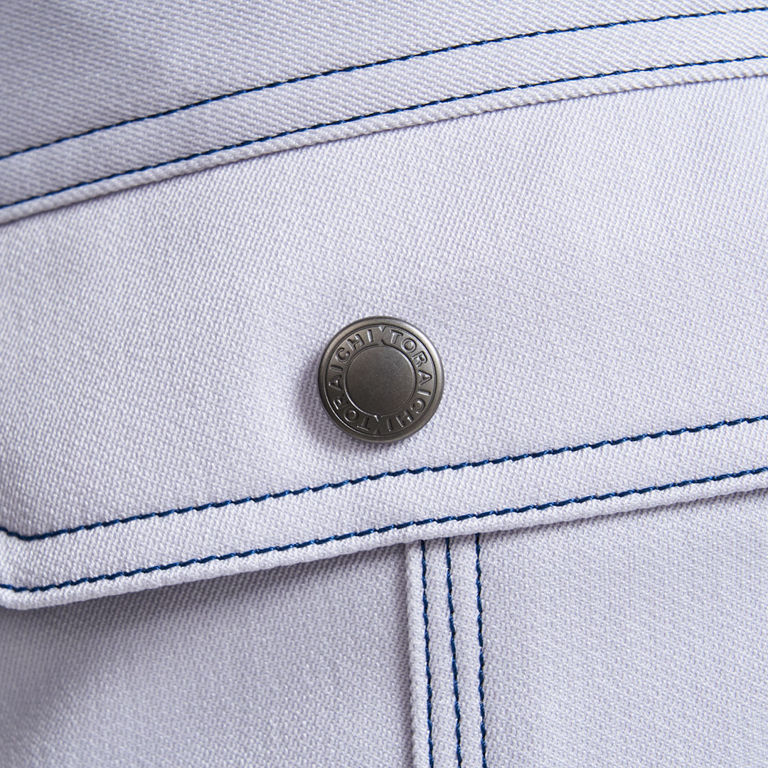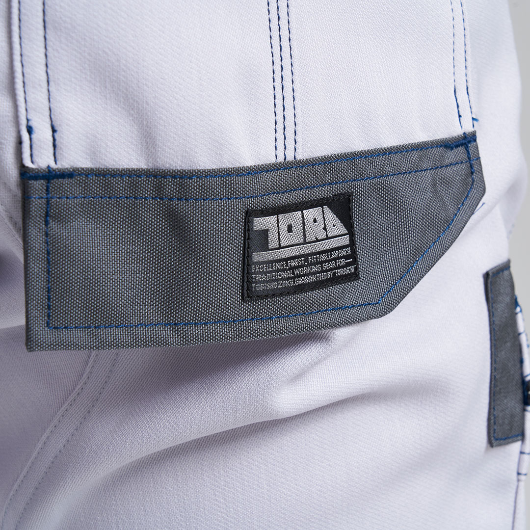 ポケット口・膝・後ろベルトループ等にコーデュラ素材を使用。高強力糸で作られた軽量でパワフルな素材は、機能性はもちろんの事、切替色となりデザイン性UPにも貢献しています。
