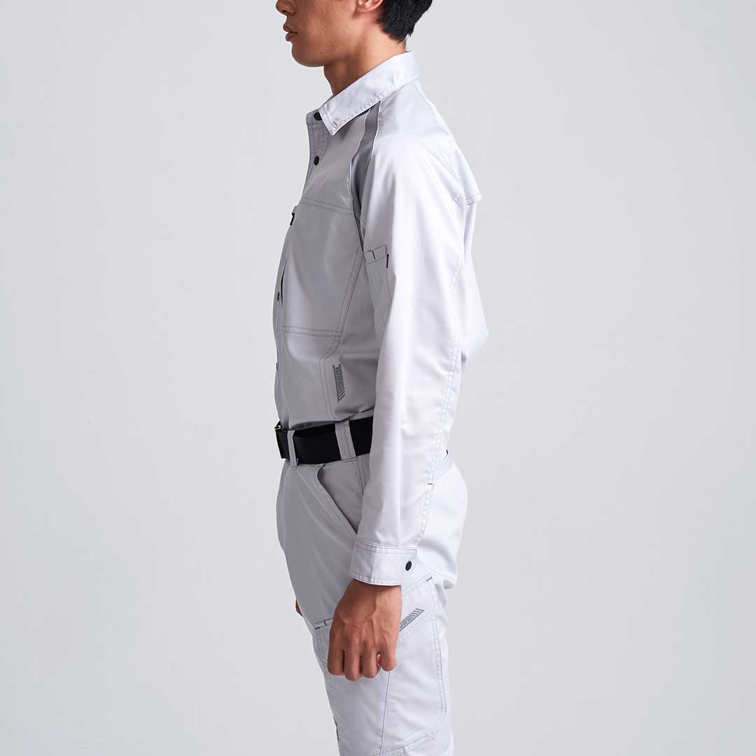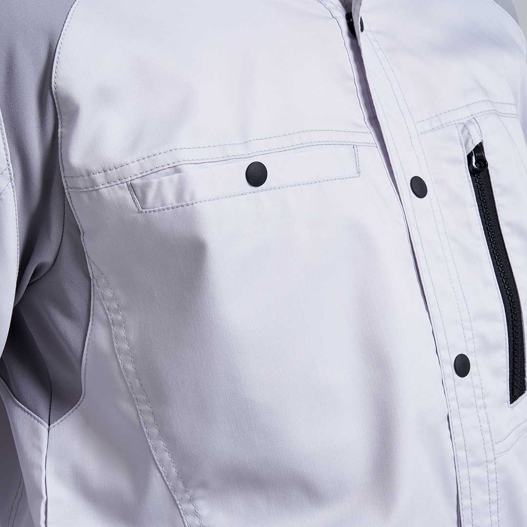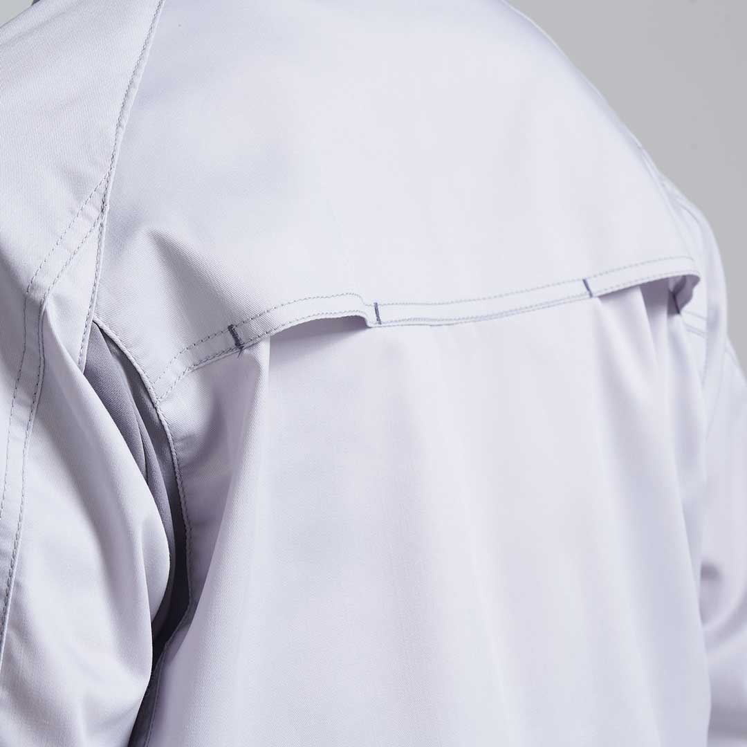 ポリエステル・綿混紡ならではの軽さとソフトな肌触りを両立。汗ばむ季節に爽快に着こなせる制電ユニフォームが登場!安心のJIS制電規格(T8118)対応商品です。肩部分にストレッチ性のあるニット素材を使用し、自然な動きをサポートします。
