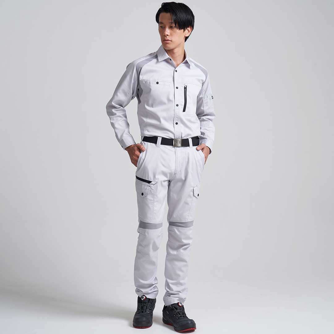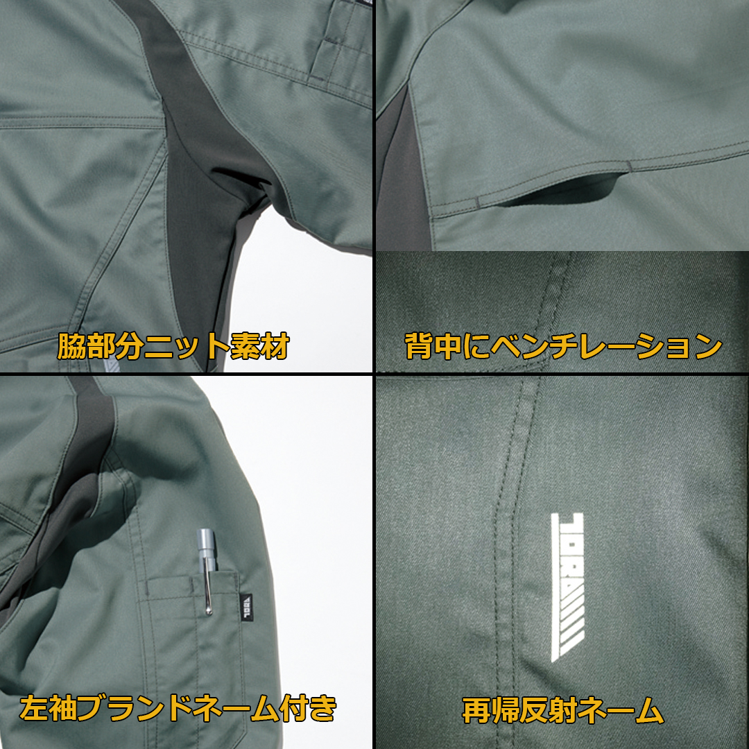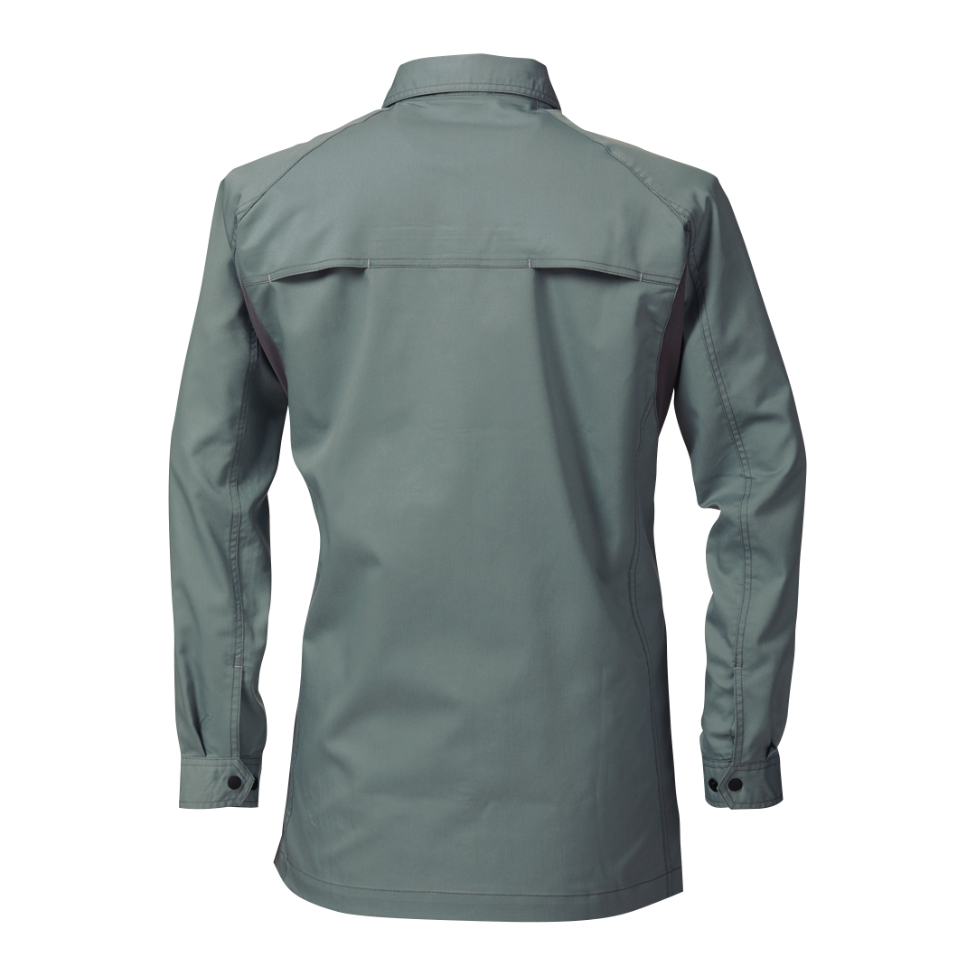 ポリエステル・綿混紡ならではの軽さとソフトな肌触りを両立。汗ばむ季節に爽快に着こなせる制電ユニフォームが登場!安心のJIS制電規格(T8118)対応商品です。肩部分にストレッチ性のあるニット素材を使用し、自然な動きをサポートします。