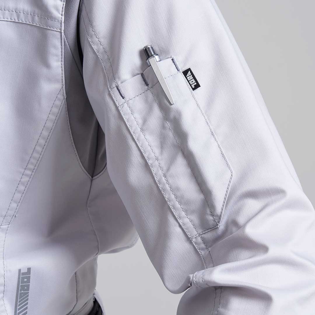 ※この商品は左袖ペン差しが通常の商品より前方にあります。その為、左袖への刺繍はペン差しより後方になります(※詳細画像参照)
