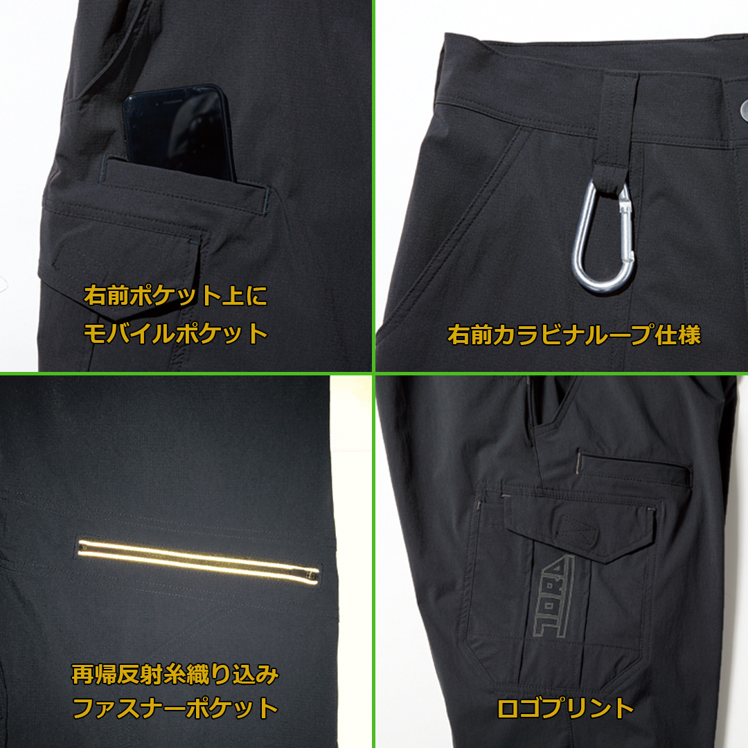 ナイロン&ポリウレタンの涼感ある薄手素材。軽快で快適な春夏に大活躍のカーゴジョガーパンツです。5915シリーズポロシャツと組み合わせると統一感のあるコーディネートが楽しめるこの春夏注目の逸品です。