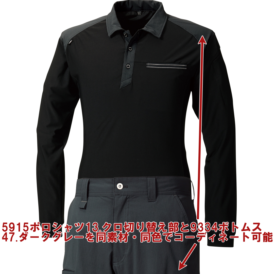 この商品の本体と、5915ポロシャツシリーズの切り替え部分は同素材です。