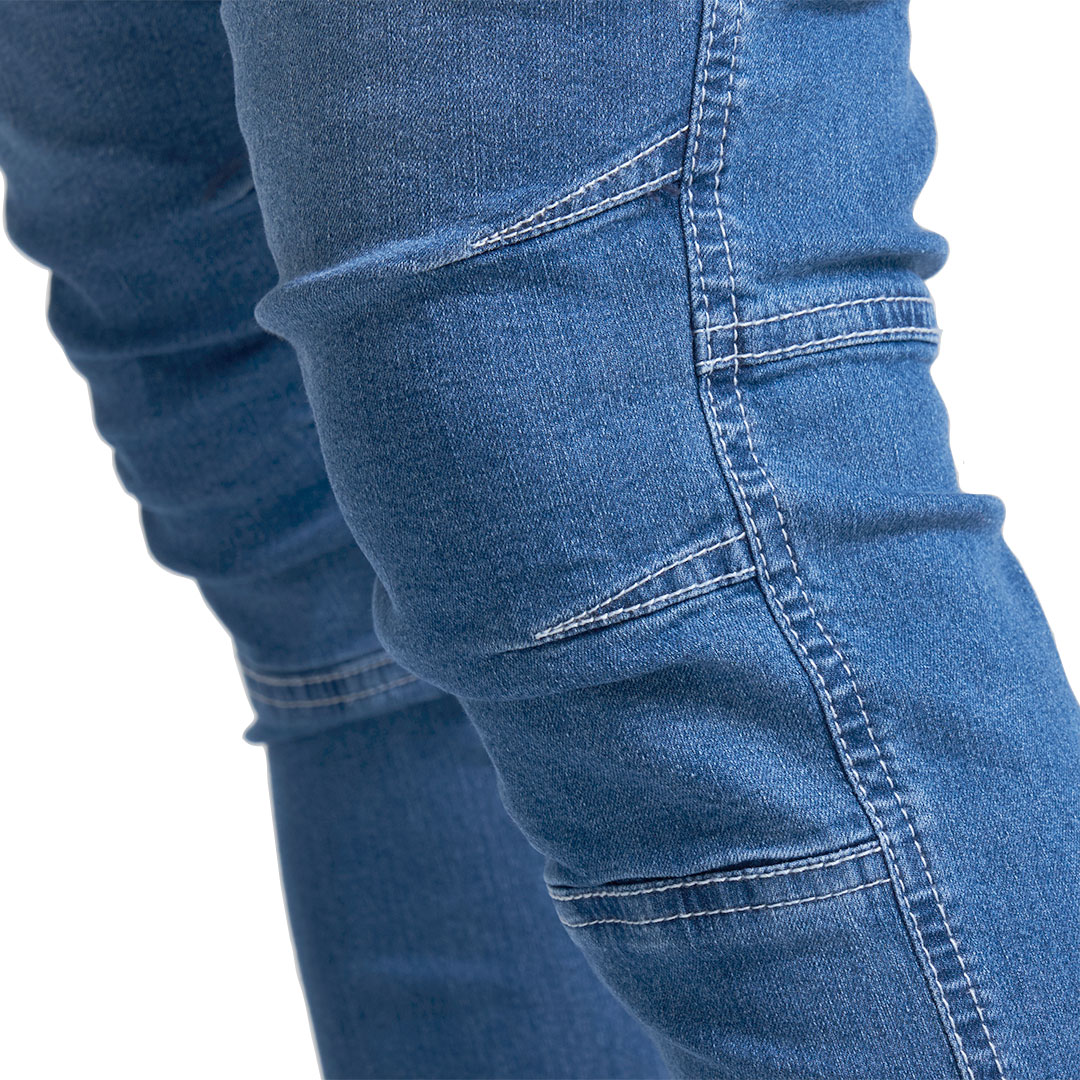 7.3オンス薄手デニム素材に鉱物練り込みナイロン糸を混紡し熱を発散。