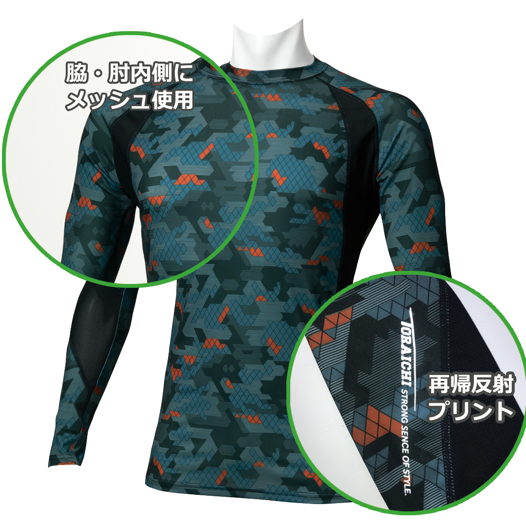 図柄と迷彩をミックスしたオリジナルの迷彩柄が周囲の目を引くインナー。