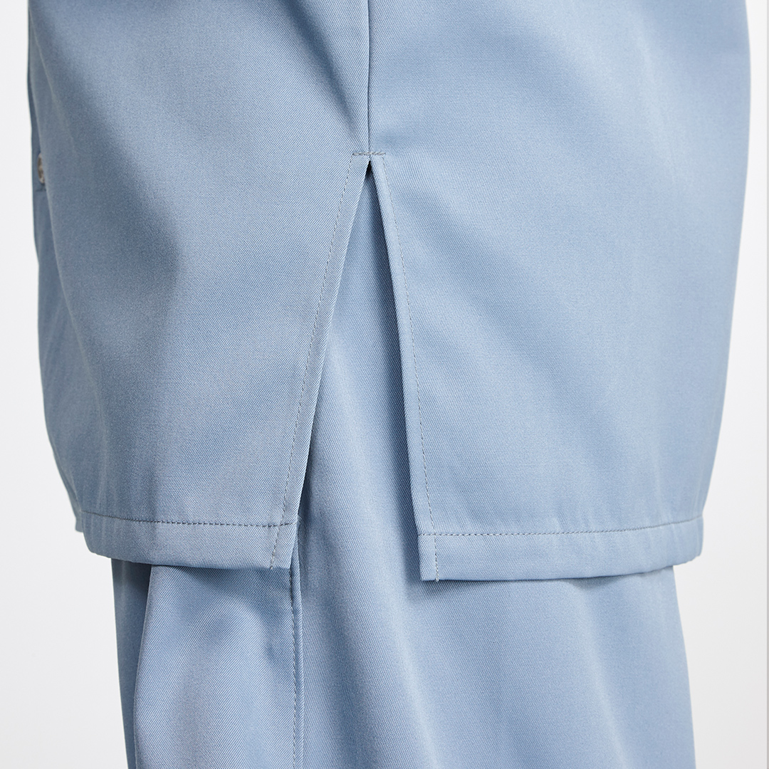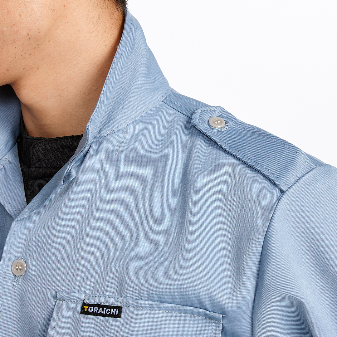 ※右胸ポケットの上部ラインが斜めの際にポケットに沿って刺繍を行います。