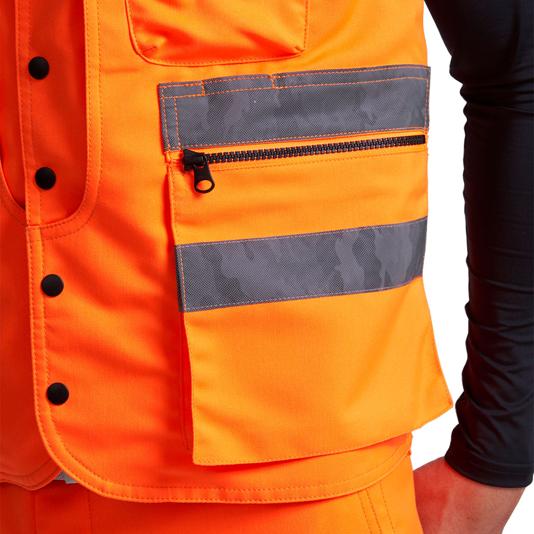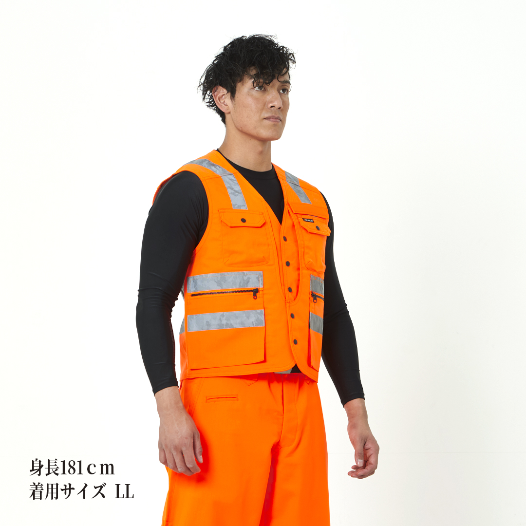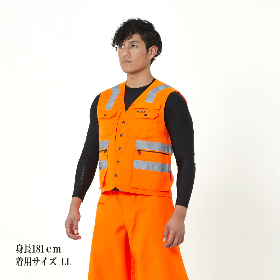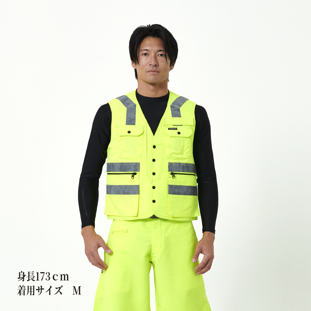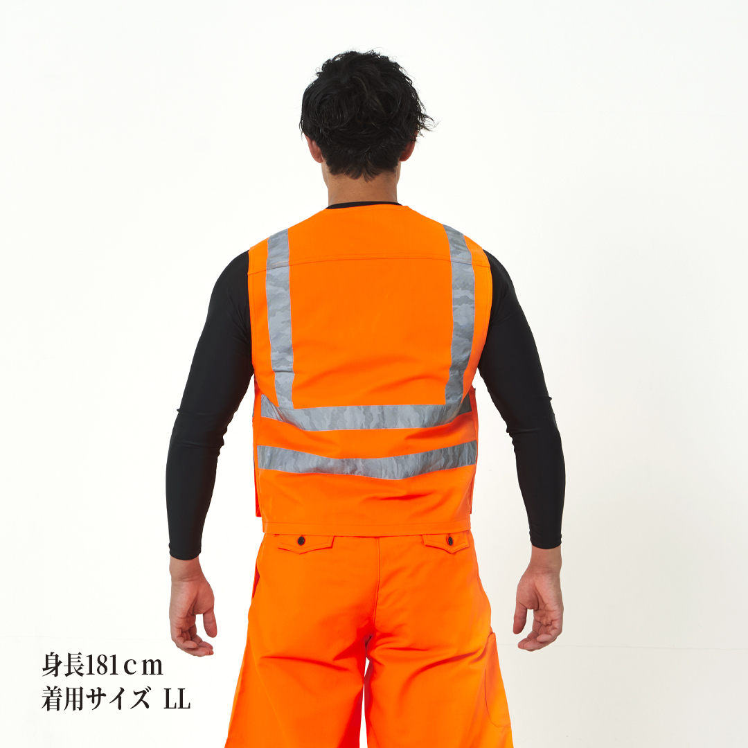 蛍光イエロー・蛍光オレンジという安全性の高い素材に迷彩反射材をプラス。安全性・デザイン性を兼備したアーミーベストが寅壱公式オンラインショップ限定で登場。