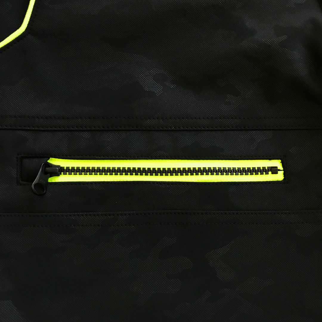 動きやすい360°ストレッチ。さらに、表面は透湿・撥水機能があり、汚れもつきにくい。しかも随所に施された再帰反射テープによって高い安全性に配慮した逸品。裾をフライス仕様してファスナーとは異なる着脱感を実現。