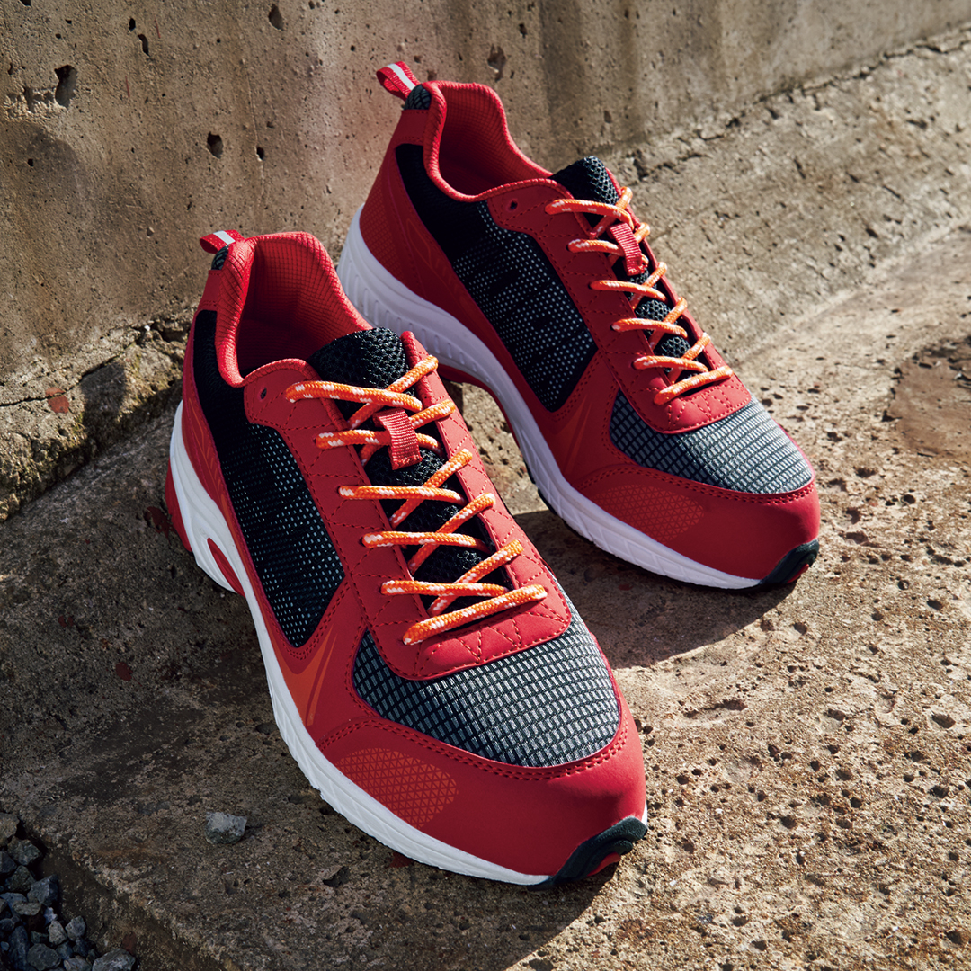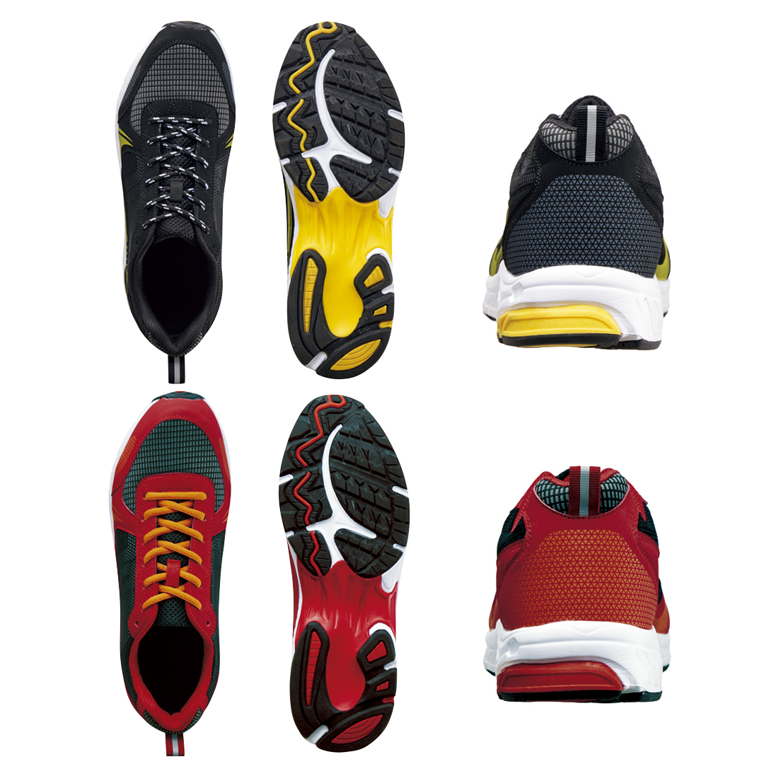 片足約300g(26.0cm)の軽作業用スニーカーが登場!側面には安全性を確保する反射材を装着。樹脂製先芯なのでタフで軽量な一足。