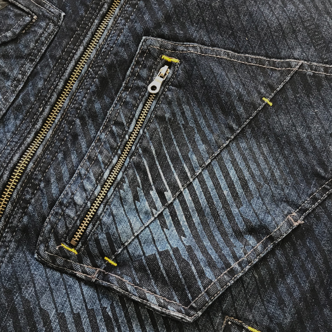 デニムワーク - 8980-554 デニム蛇腹ライダースジャケット(ストライプカモ)【在庫限り】