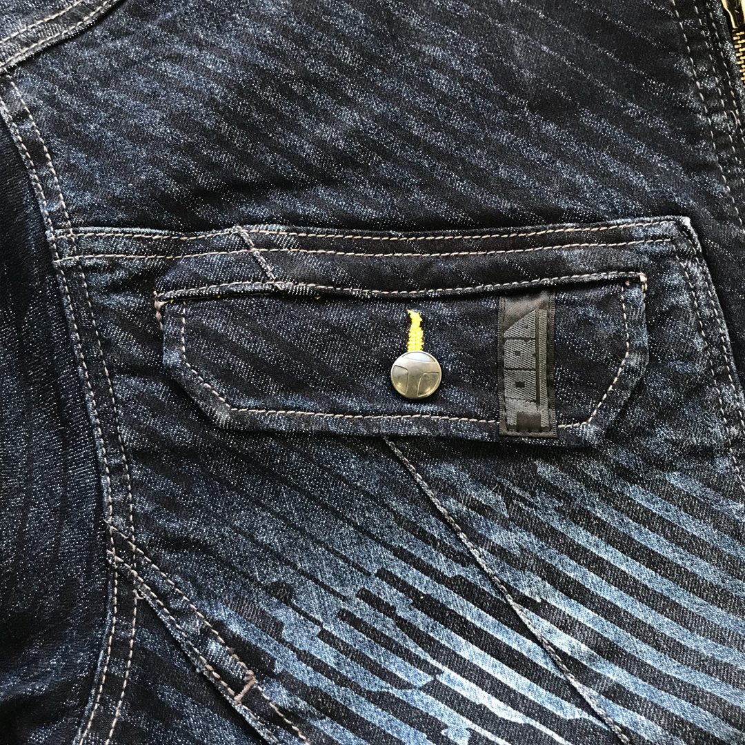 8980-554 デニム蛇腹ライダースジャケット(ストライプカモ)【在庫限り】