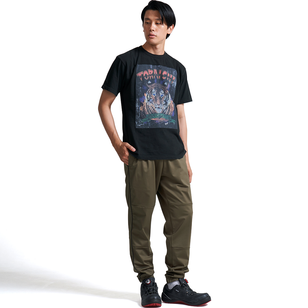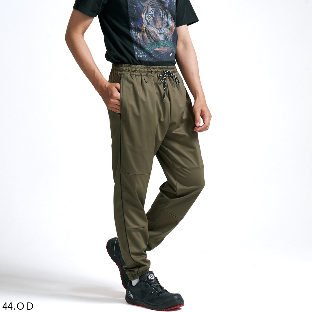 画期的な伸縮性を持つトリコット素材とゆったりシルエットによりプライベートな時間の着こなしを楽しめます。