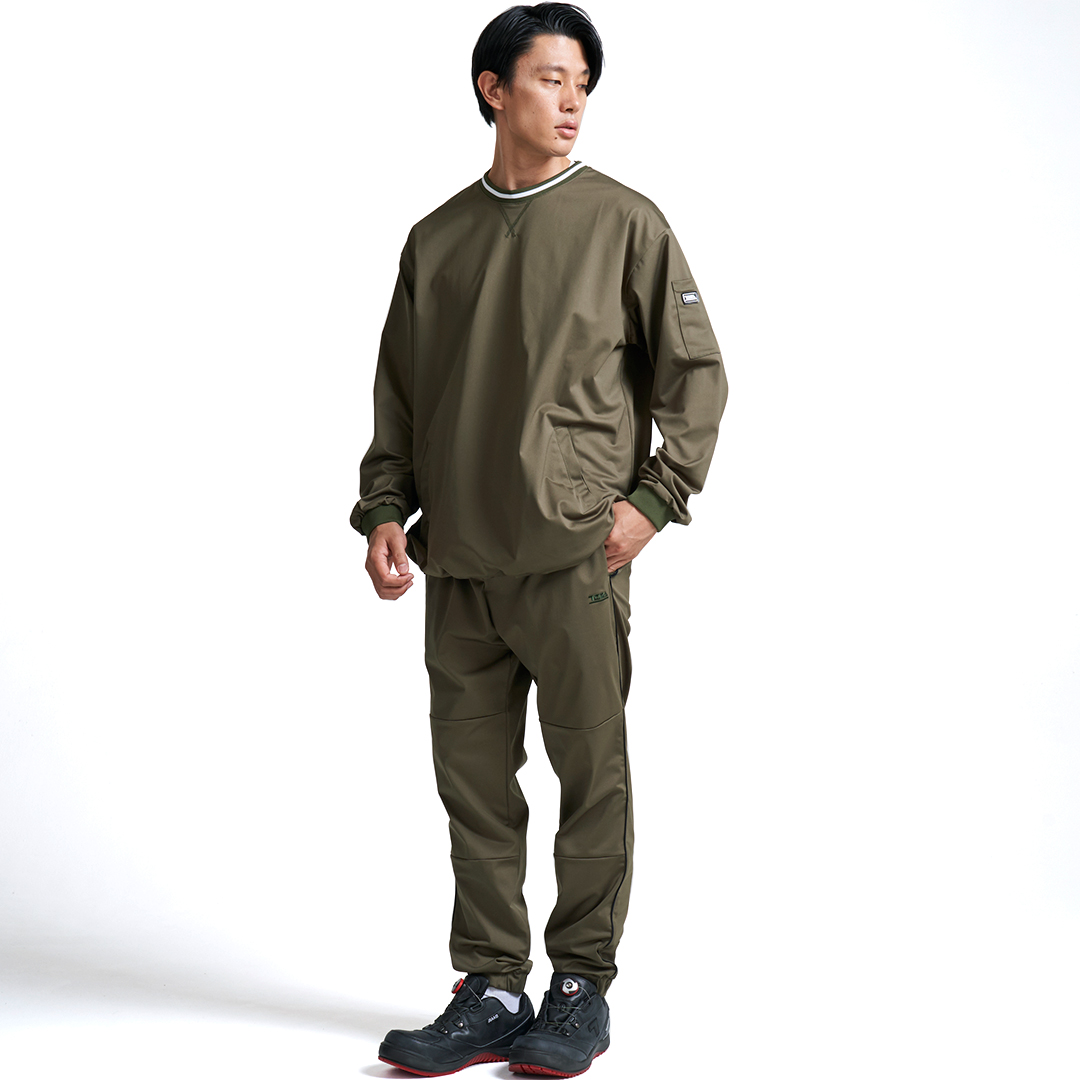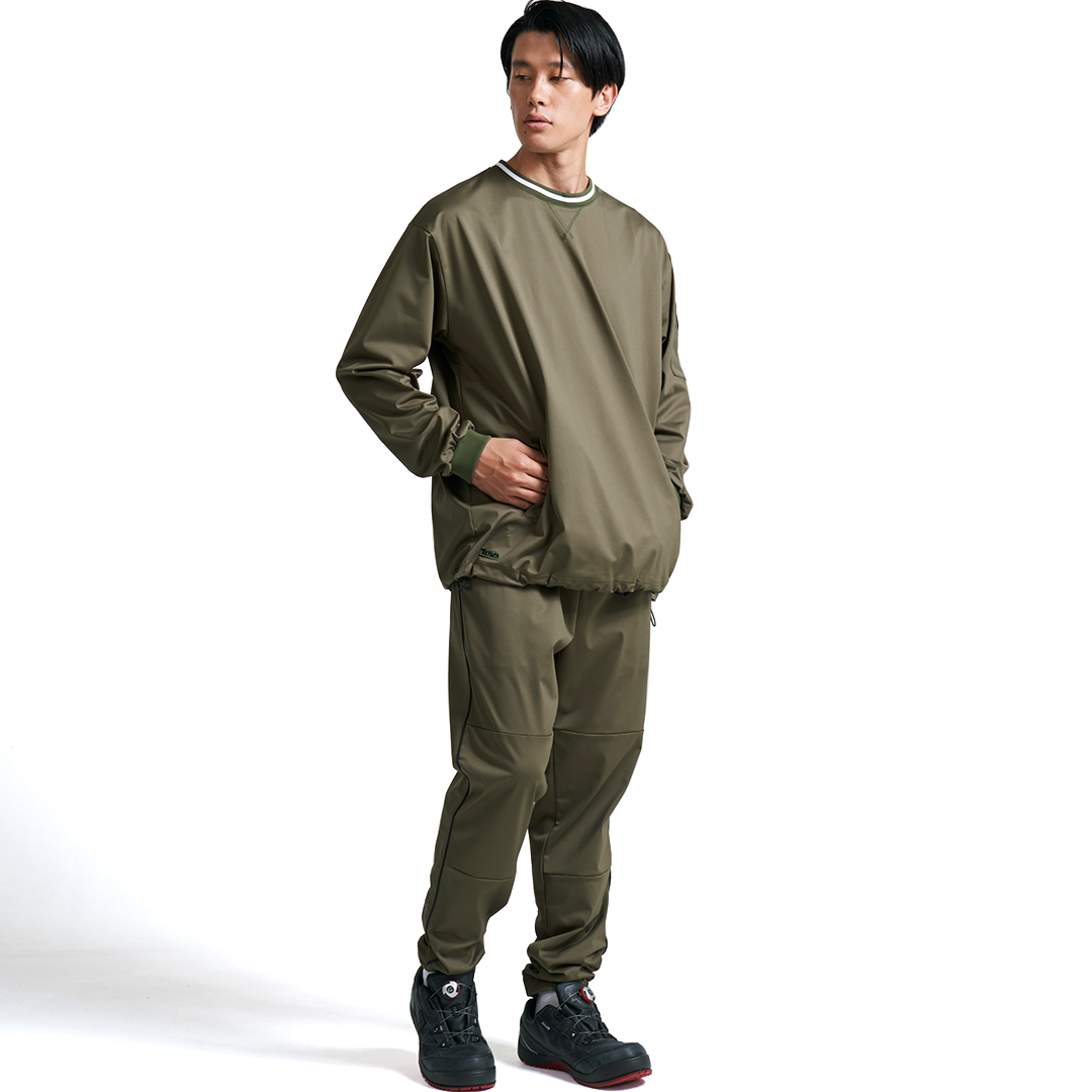 画期的な伸縮性を持つトリコット素材とゆったりシルエットによりプライベートな時間の着こなしを楽しめます。