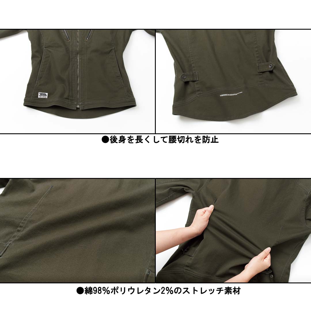 厚地の綿ストレッチ(ジャーマンクロス)で自由自在な動きをサポート。