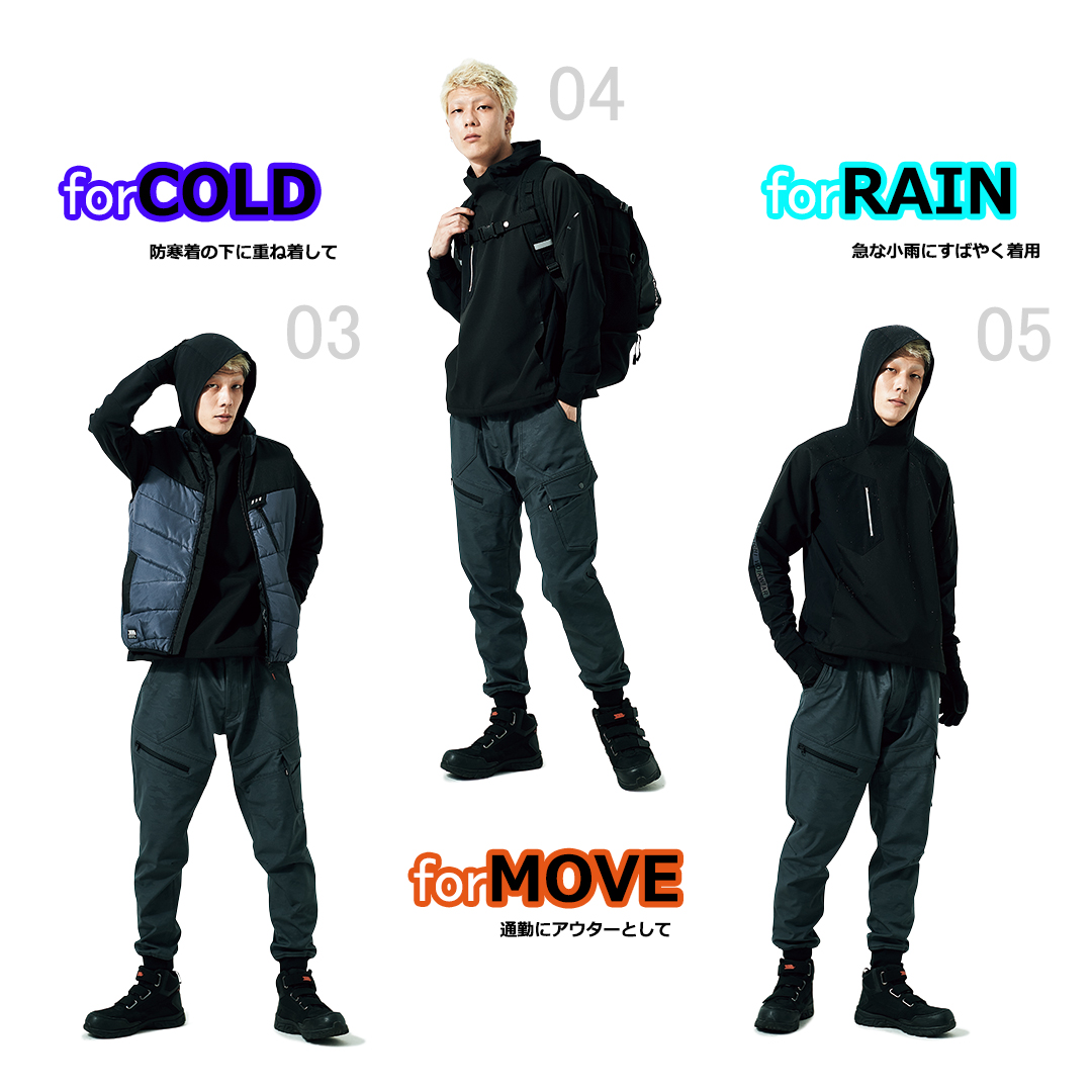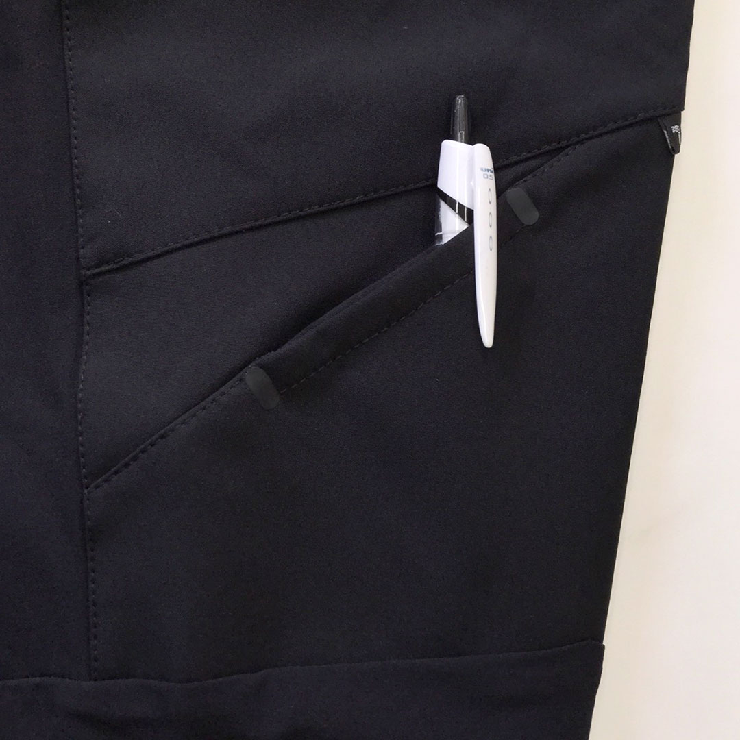 ストレッチ性に加えて透湿撥水機能があるから作業をしてもムレ感がなくて快適。