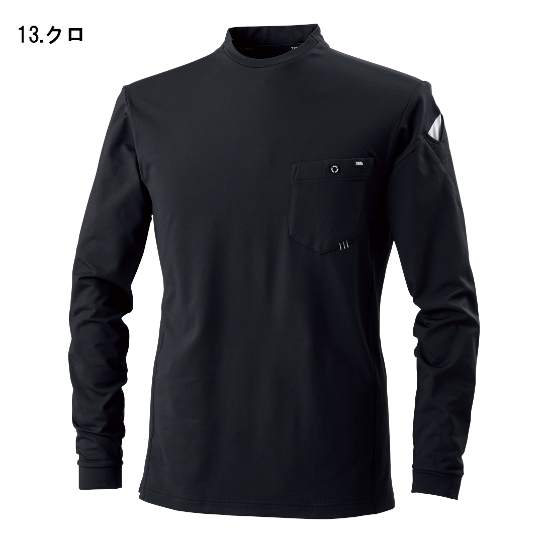 シンプルで着る人を選ばないデザイン。裏起毛で暖かく、吸汗速乾で冬場も快適。動きやすさに配慮した脇下トリカット仕様で快適な仕事をサポートします。