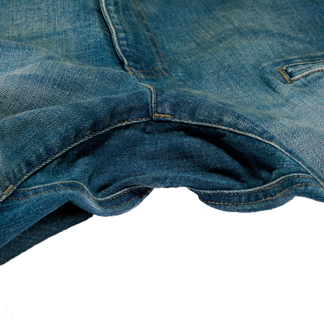膝の表地を二重にして補強し、立体的に仕上げることでより体にフィットする仕様に。