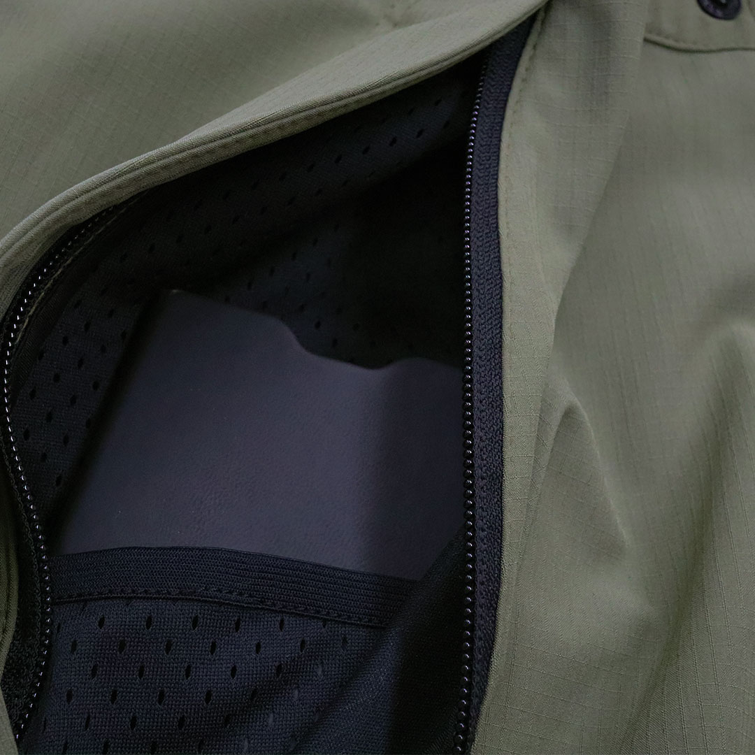 ●右袖にある刺繍のロゴ入りマジックテープは、ペン差しとしても使用可能