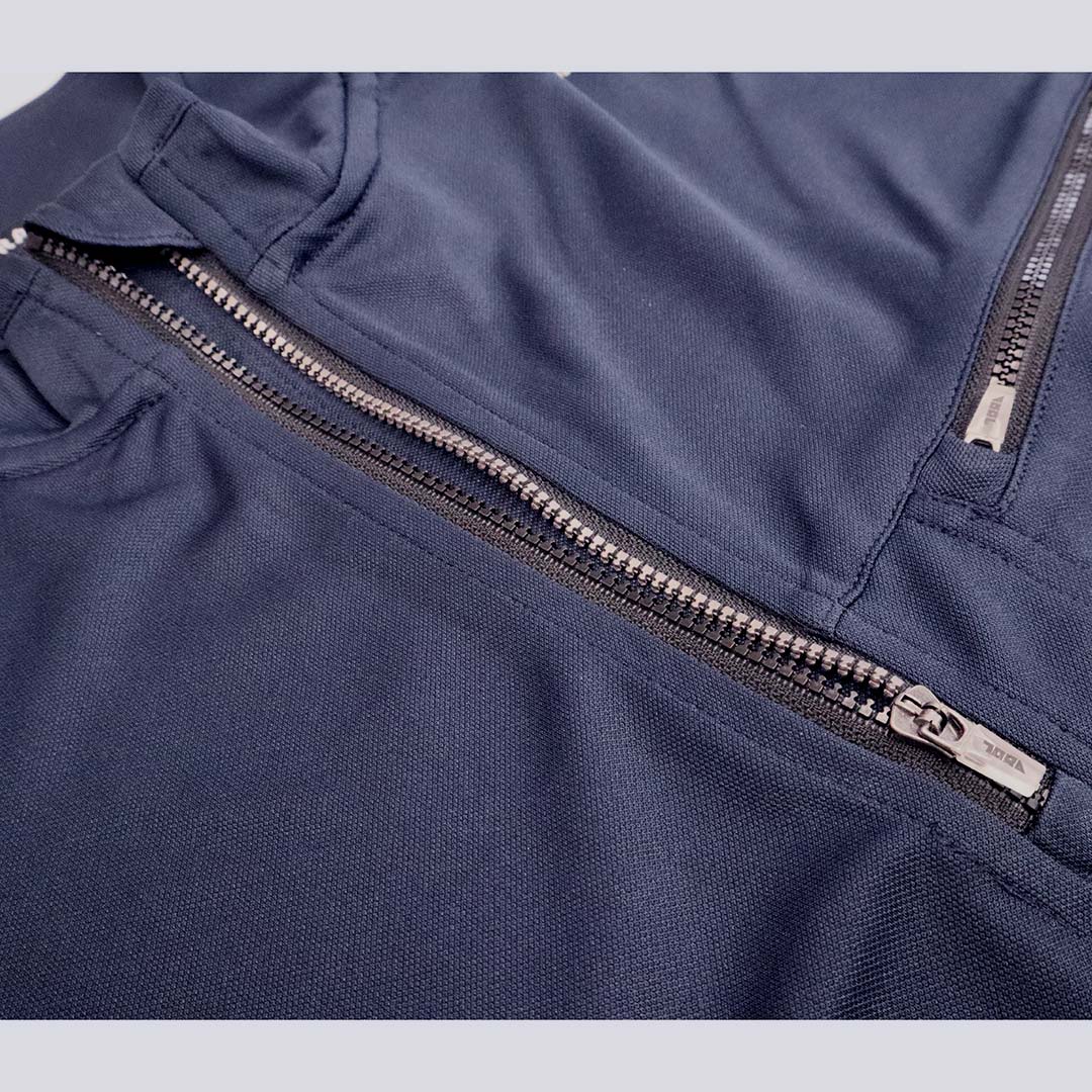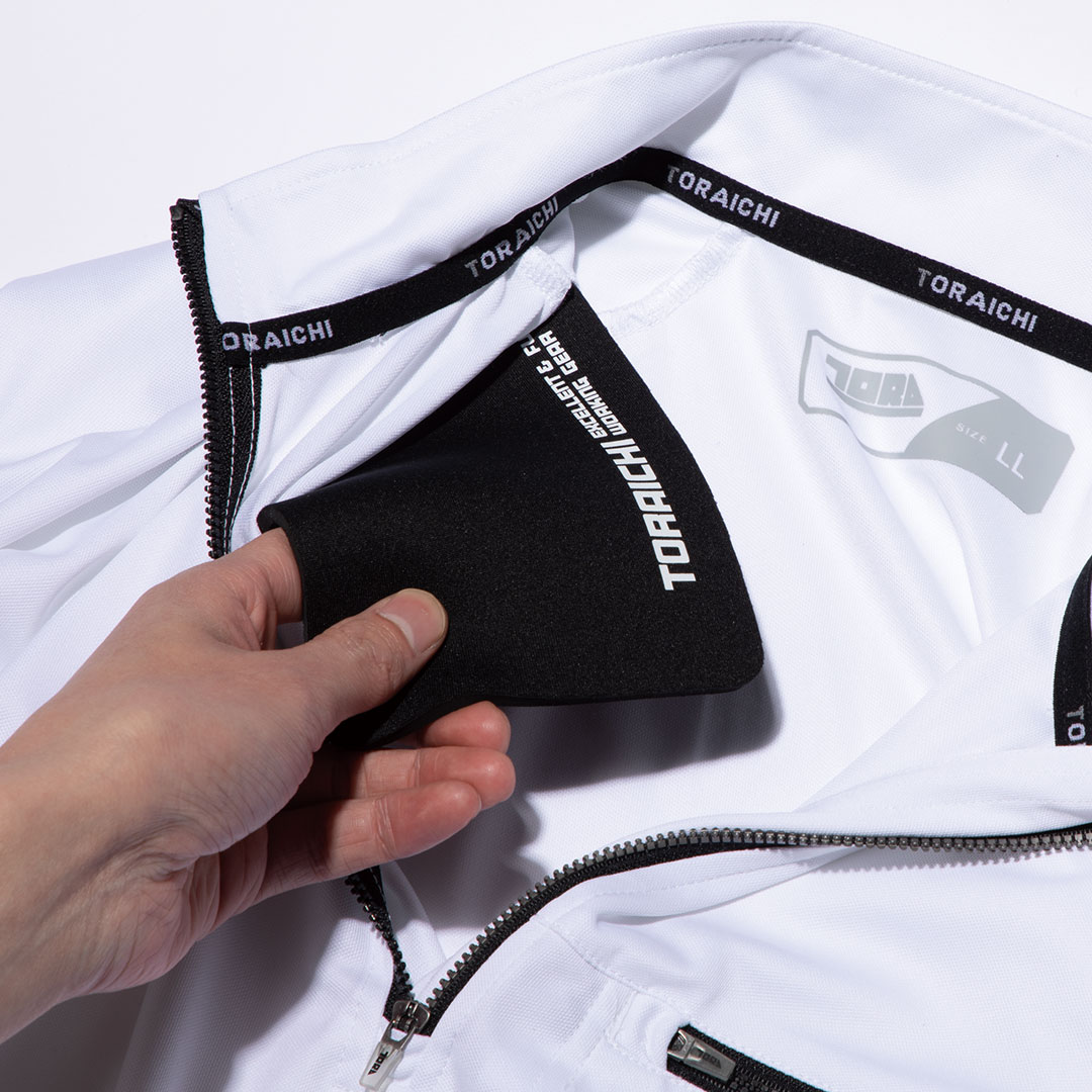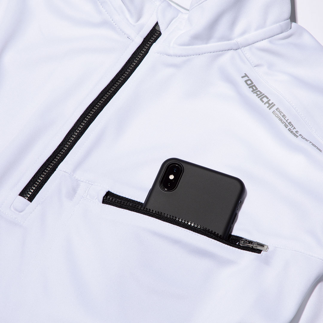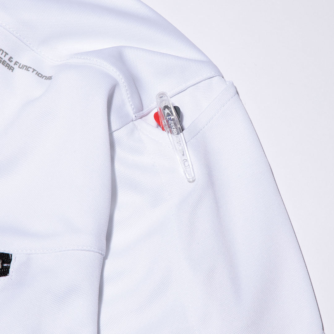 肩部分にパッド挿入専用のポケット付き。長袖ジップアップシャツが登場!!