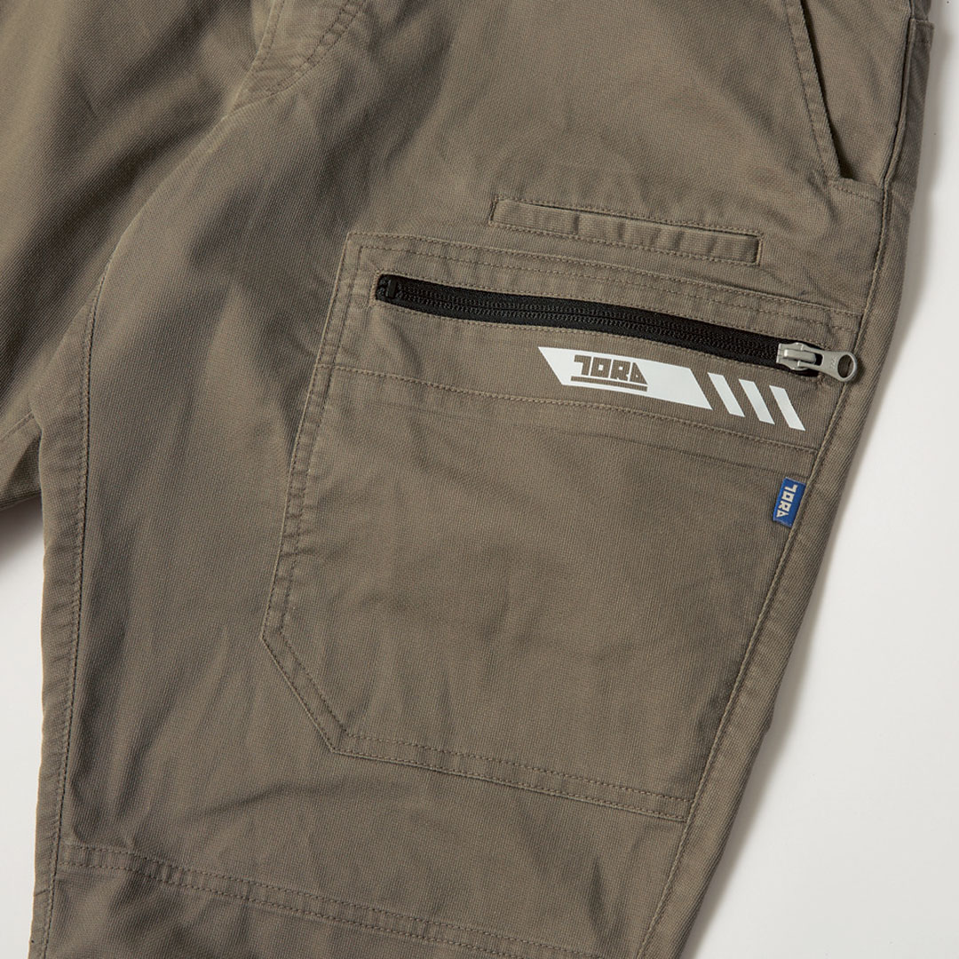 ポリウレタンを使用せず、ストレッチ性を最大限実現し、裏面点接触で肌離れの良さを体感!!特殊加工によりヴィンテージ風の着古したような色落ち感をお楽しみいただけます。随所にこだわり満載の機能とデザイン性を兼ね備えたカーゴパンツです。