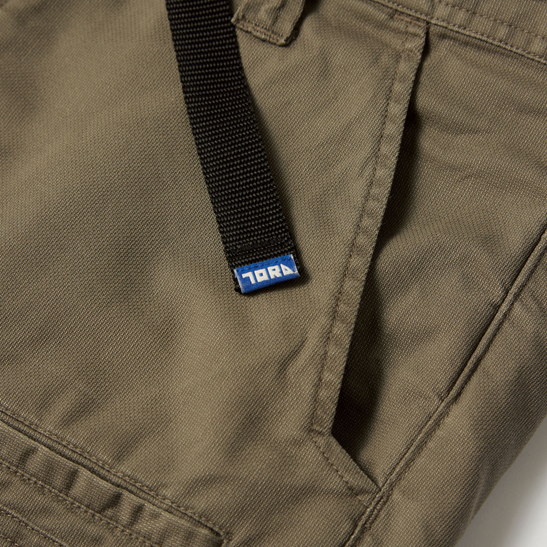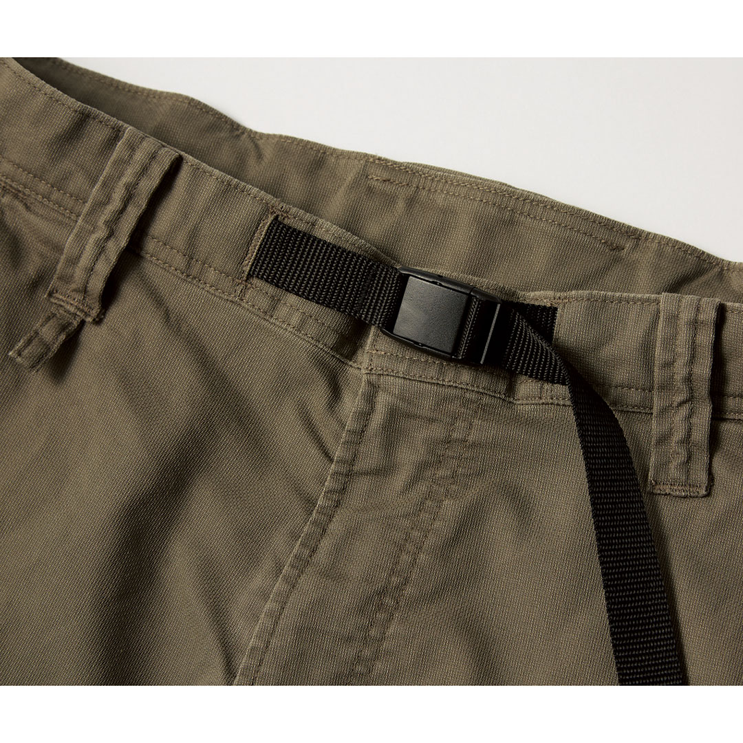 ポリウレタンを使用せずストレッチ性を最大限実現し、裏面点接触で肌離れの良さを体感!!特殊加工によりヴィンテージ風の着古したような色落ち感をお楽しみいただけます。随所にこだわり満載の機能とデザイン性を兼ね備えたカーゴハーフパンツです。