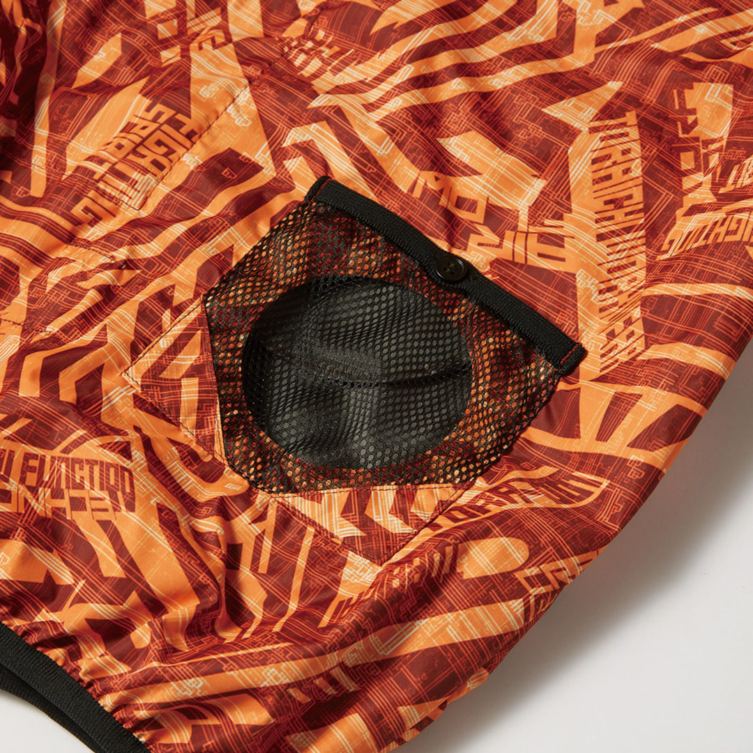 ファンキットをセットする事により、送風機能を実装できる半袖ジャケット。個性的な柄&カラーバリエーションが酷暑にも映える逸品。