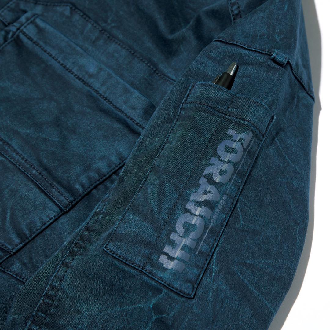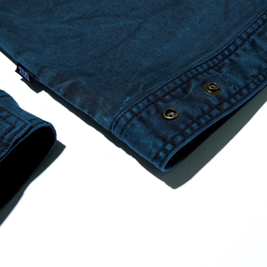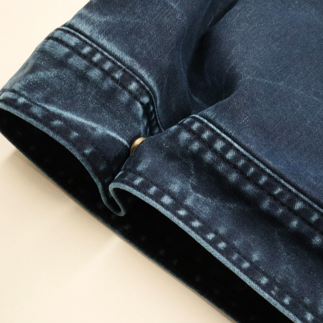スタイリッシュなシルエットにバイオ加工のムラ染めで独特な風合いを演出