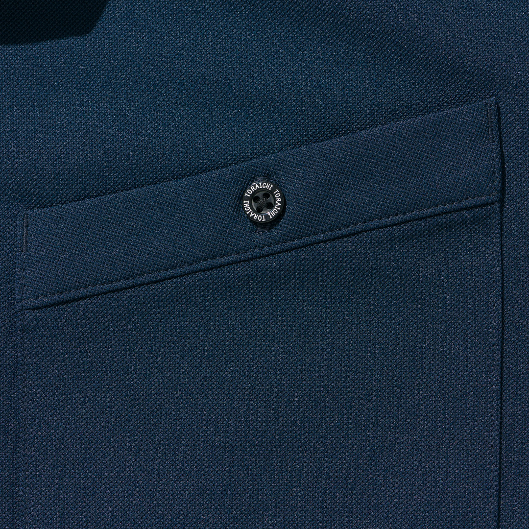 左胸ポケットの位置が高い為、着用時に刺繍が隠れてしまう可能性がございます。ご留意ください。