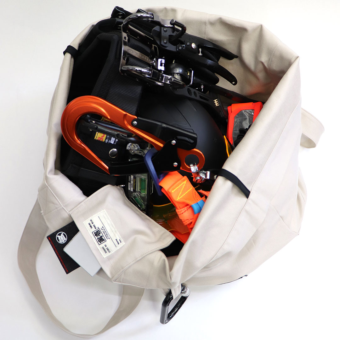 余裕の70リットルサイズだから「腰道具+フルハーネス+ヘルメット」も収納可能。4441シリーズを思わせる無地素材。堅牢な綿100%素材の「大きい」「強い」「畳める」トートバッグです。
