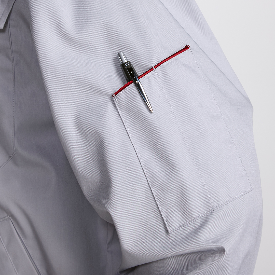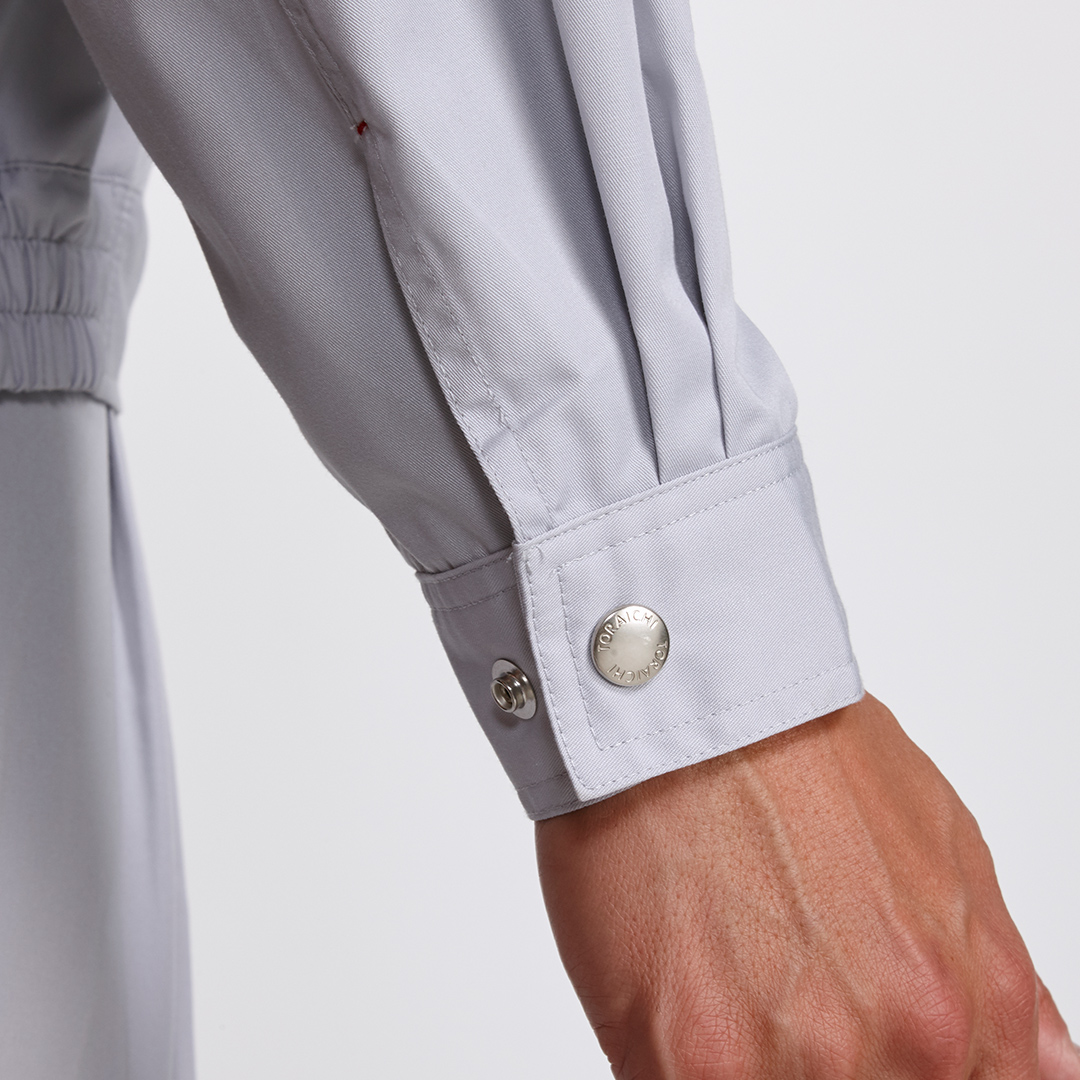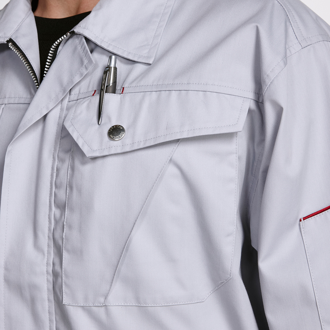 ハードな職場環境においてもパワフルで、安心して着用できます。また、綿の吸汗性や肌ざわりのよさもプラスしています。