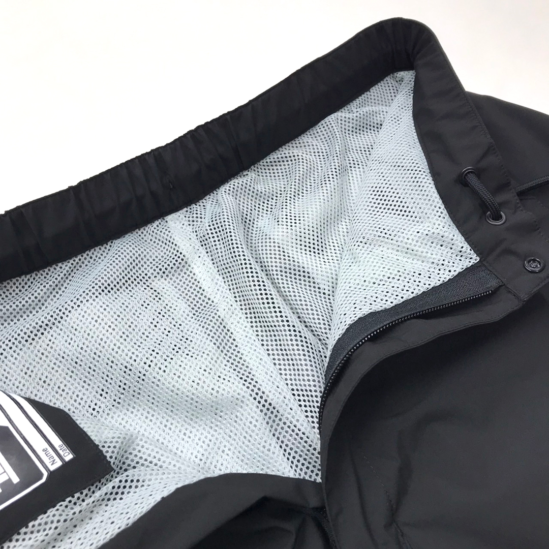 ウインドブレーカーパンツは黒をポイントに置いたデザインのジャケットとセットアップ可能。