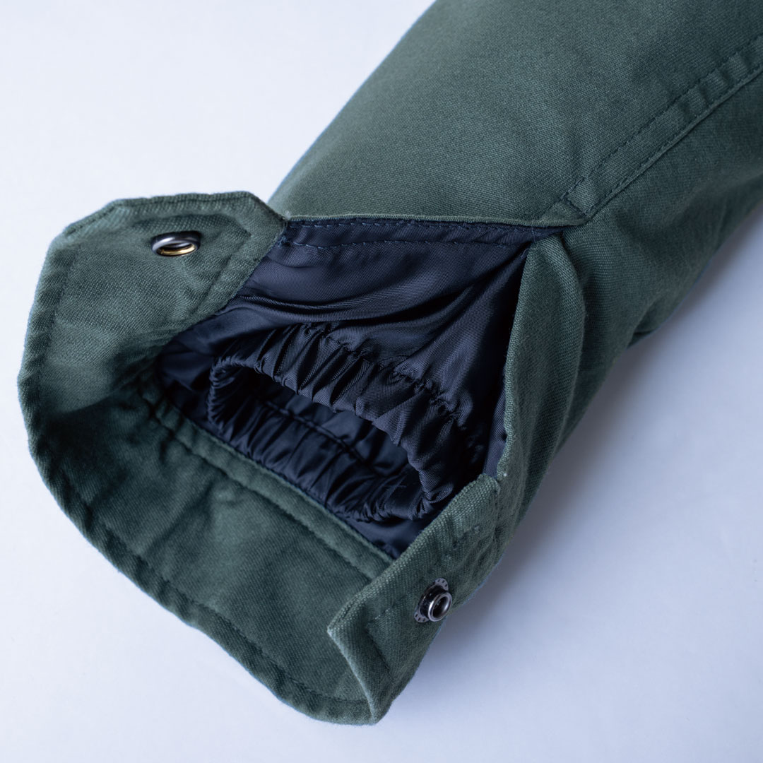 表綿100%生地に中綿入りで裏地にブラックプリントを施した綿防寒が登場!!