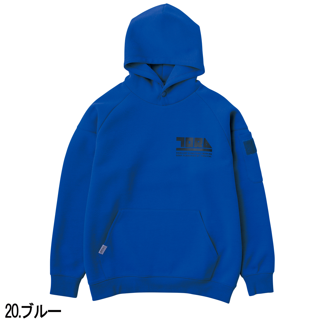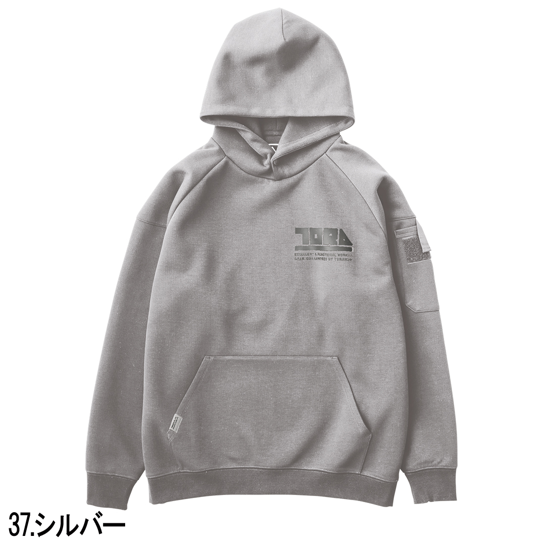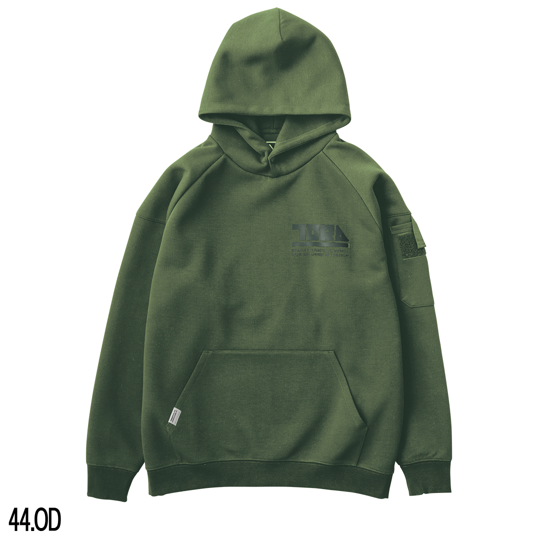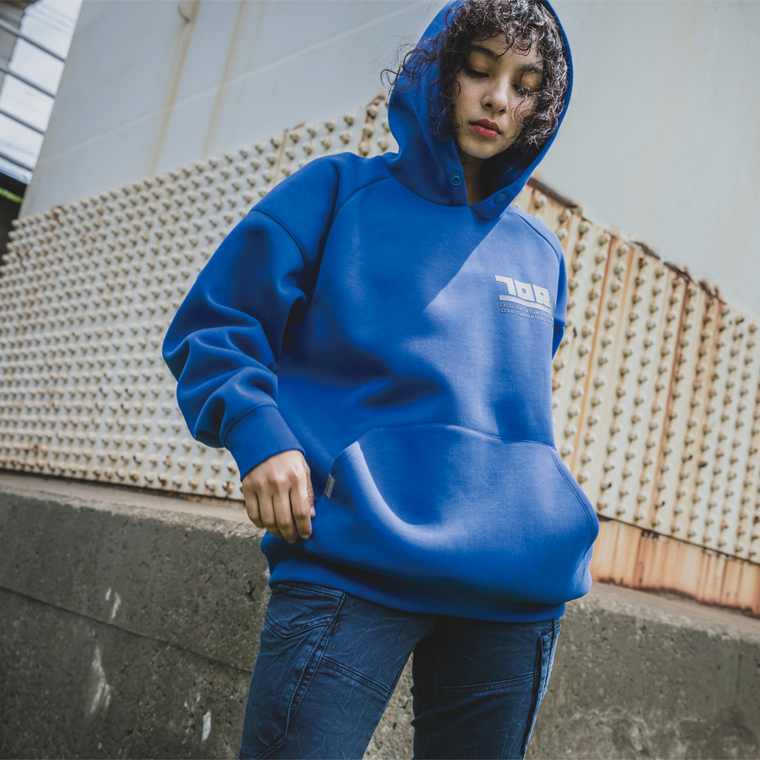 重量感のある撥水機能付きダンボールニットのフーディーは、カジュアルウェアーの様なゆったりシルエット。