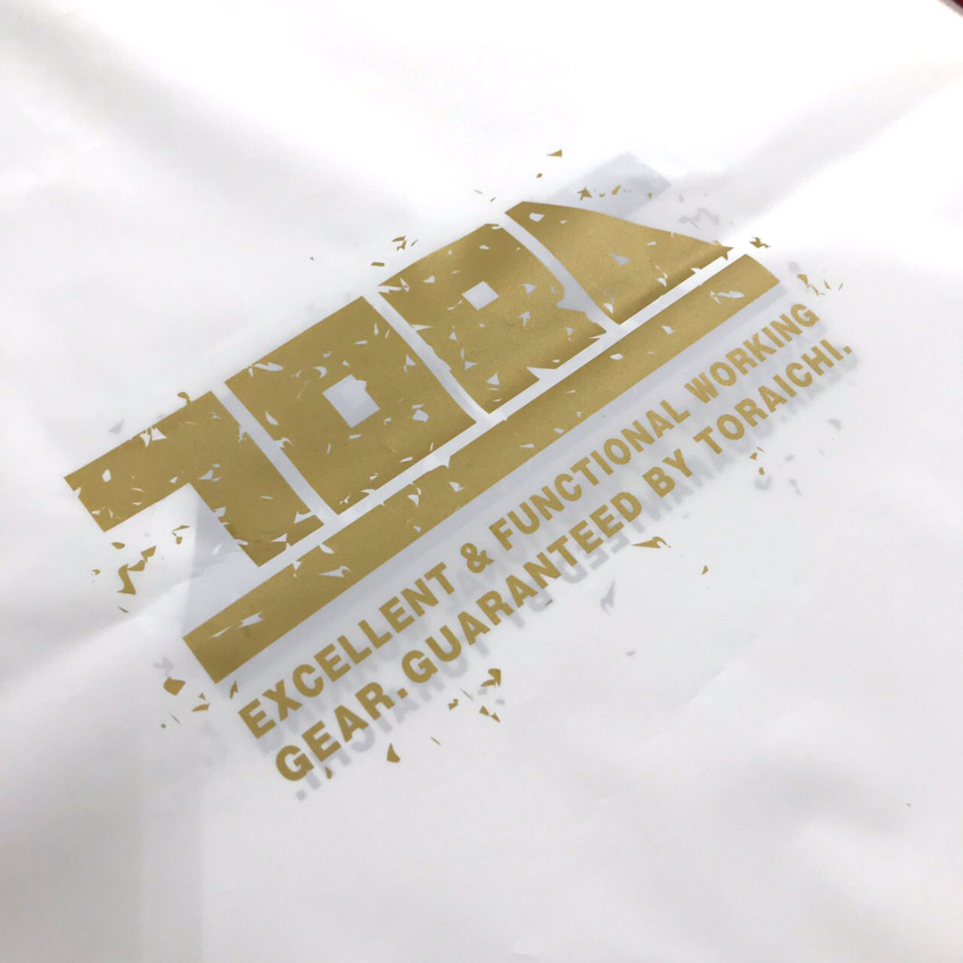 白地にゴールドのTORA-ロゴが映えるデザインです。