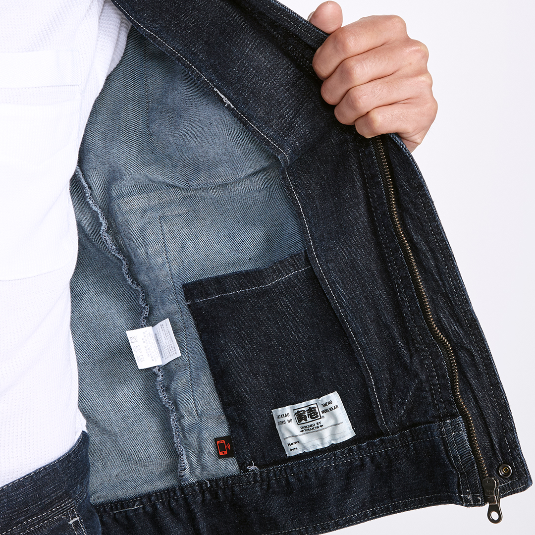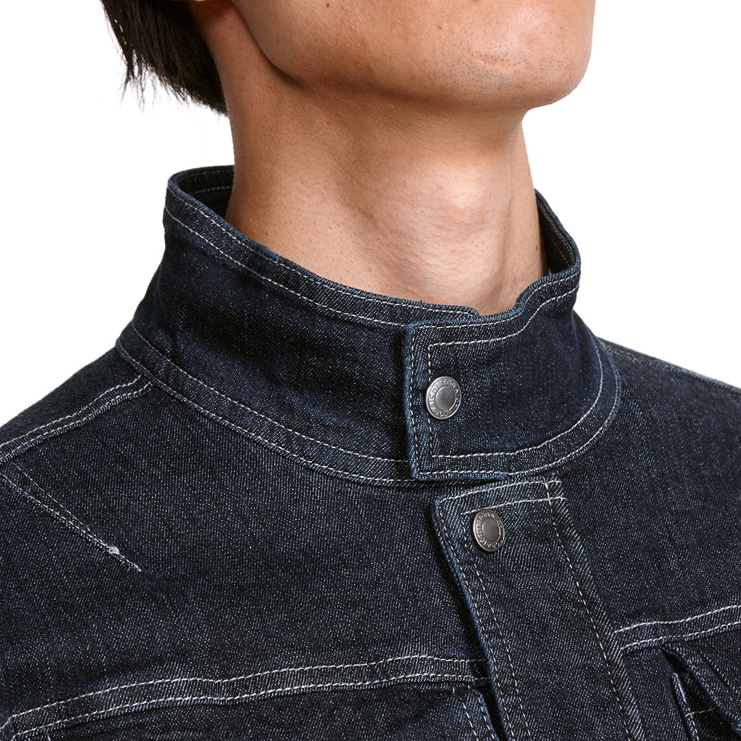 ビンテージ感のある10オンスデニムにポリウレタンをプラス。