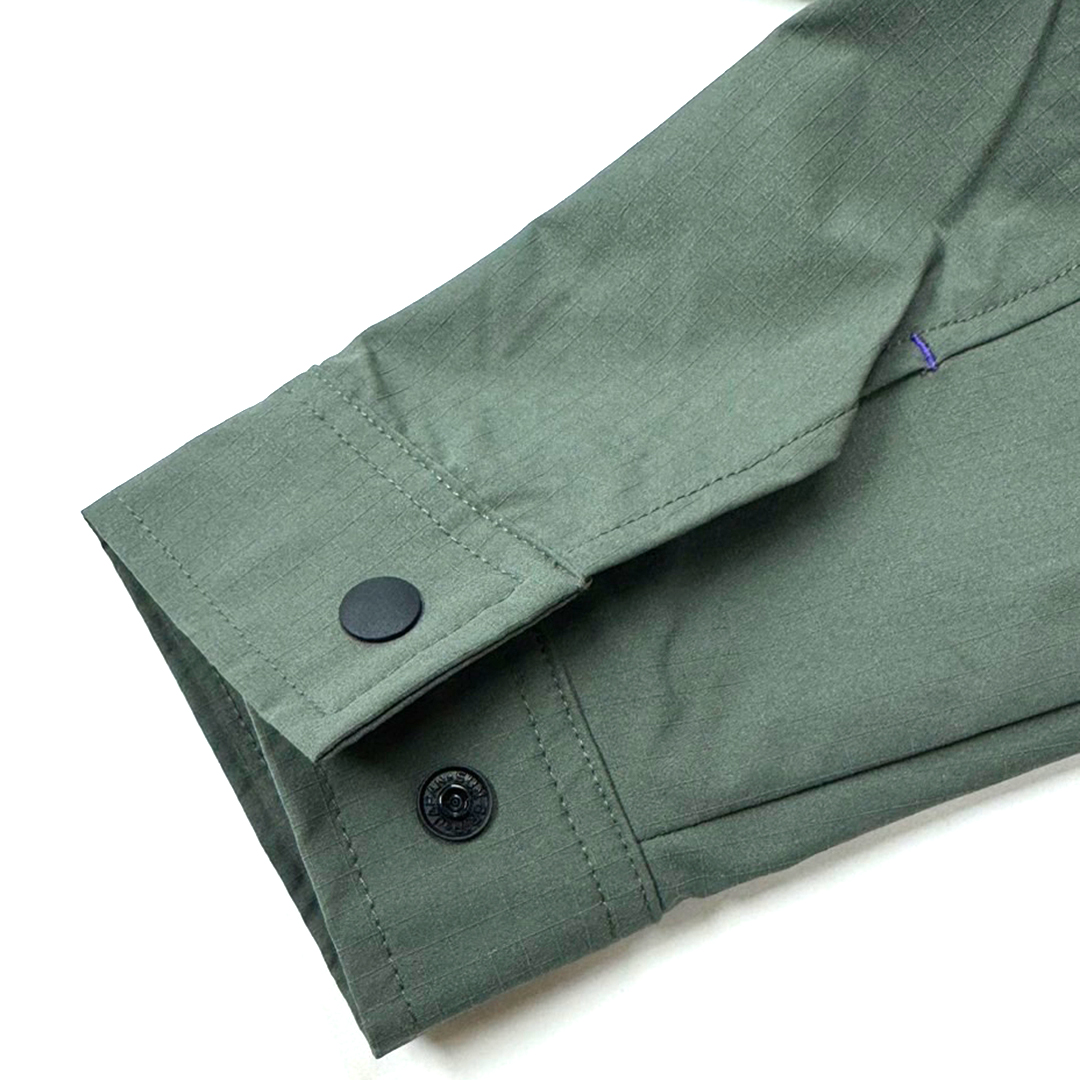 ●前開き・袖口には、軽量の強化プラスティックのドット釦を使用