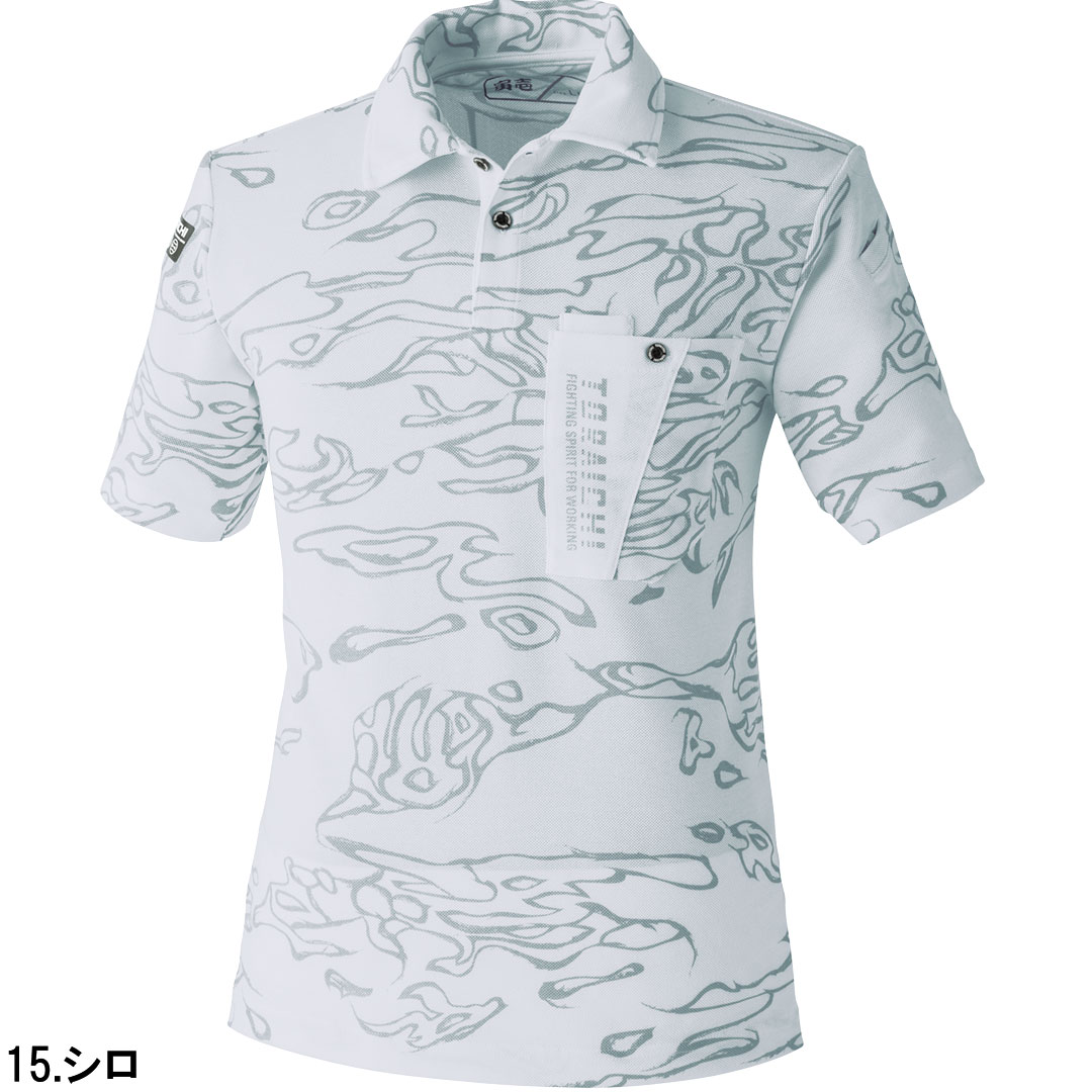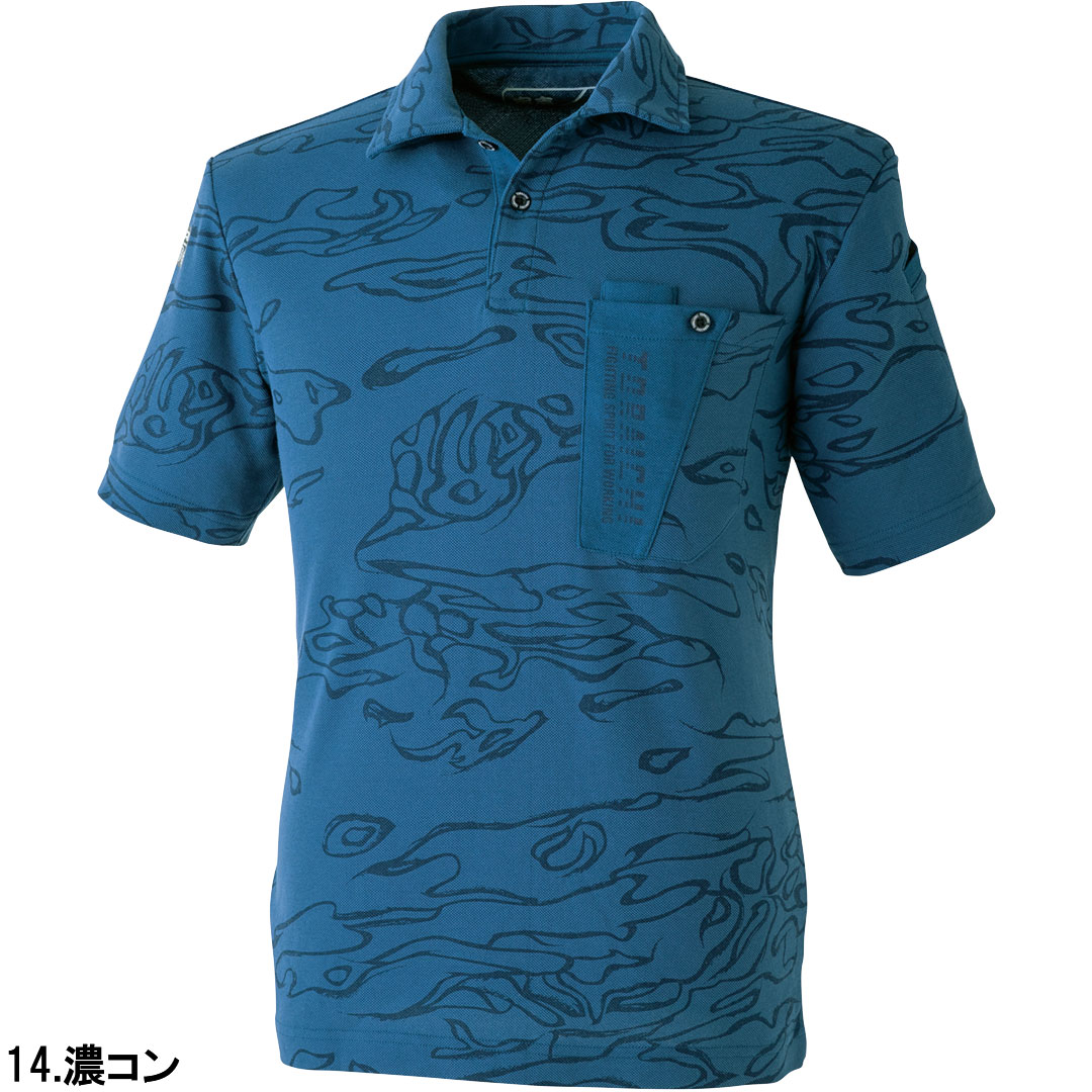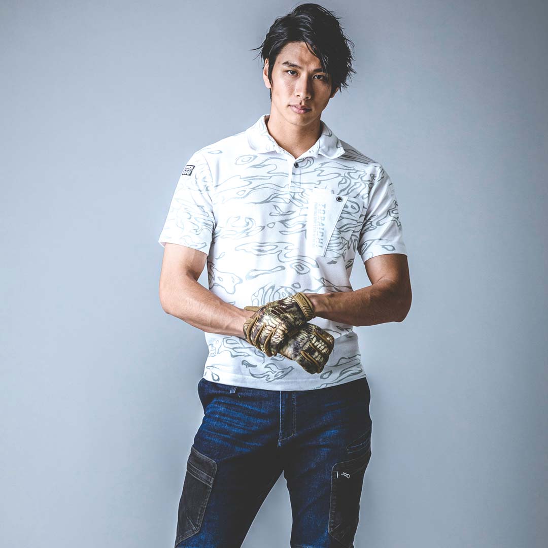 肌触りの良い綿混鹿の子にTORAを隠し文字にした今季限定オリジナル迷彩柄のプリント半袖ポロシャツ‼