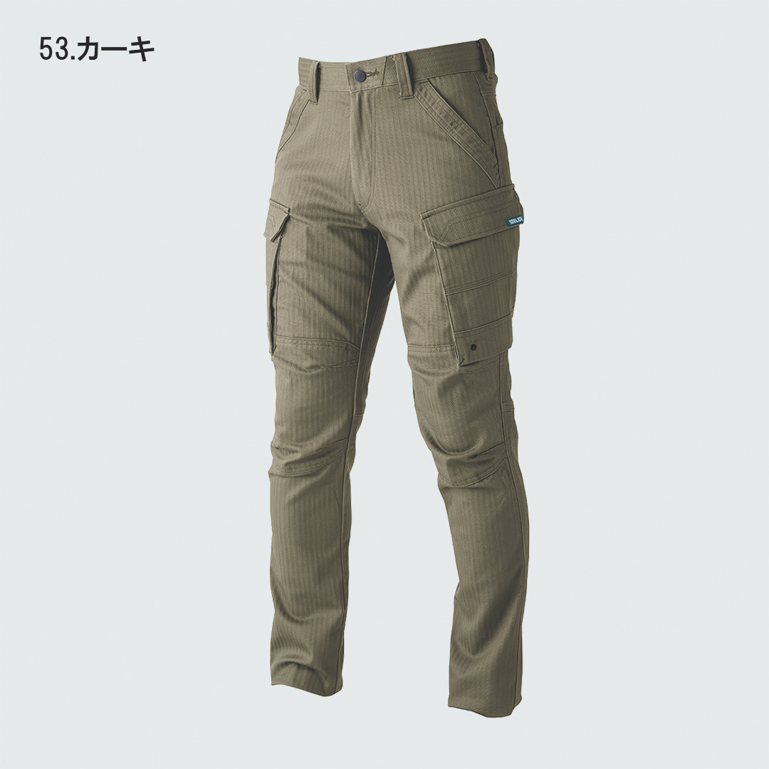 この商品の53.カーキはサンプル製品作成時とは色合いが変わっています。特に2024-2025AWワーキングカタログP.6~7は撮影環境もありかなり緑が強くなっています。御購入時には予めご了承ください。